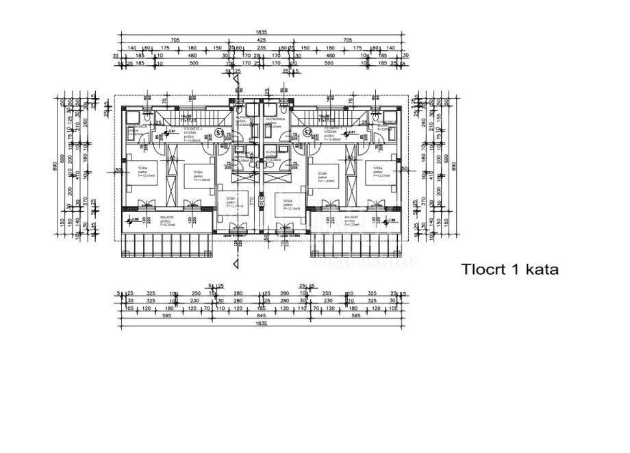 OTOK KRK, MALINSKA, prodajemo dvojnu kuću s bazenom površine 139,69 m2 i 173 m2 okućnice. Kuća je visine prizemlje i kat. Prizemlje se sastoji od ulaznog halla, open space kuhinje s blagovaonom i dnevnim boravkom iz kojeg se izlazi na djelomično natkrivenu terasu te u nastavku sunčalište i bazen površine 21 m2. U prizemlju je također i vešeraj i WC. Unutarnje stubište vodi na prvi kat gdje se nalaze tri spavaće sobe, tri kupaone i balkon na koji imaju pristup dvije sobe.