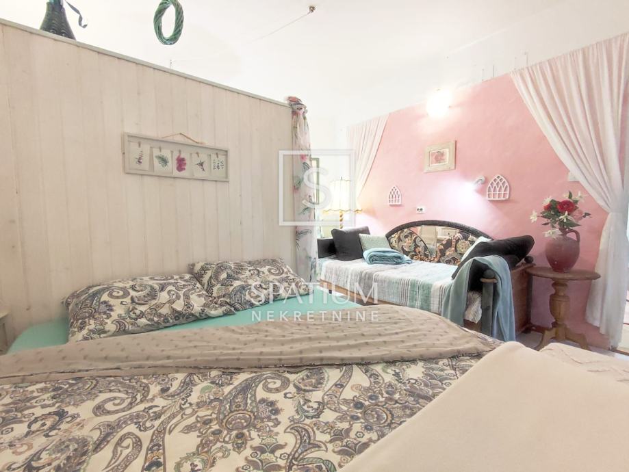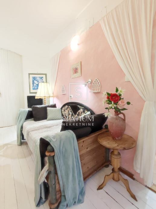 Stanovi se nalaze na mirnoj lokaciji, blizu svih sadržaja i centra, 450 m od mora. Iznajmljuju se kompletno namješteni i uređeni u osebujnom umjetničkom stilu. Okruženi zelenilom i karakterističnim primorskim vrtom, pogodni su za stanovanje ili za povremeno opuštanje u ovoj atraktivnoj turističkoj destinaciji. Moguć je najam samo jednog stana zasebno. Režije nisu uključene u cijenu najma.