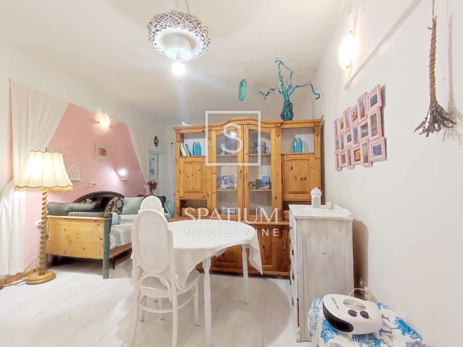 Prvi stan, površine 41 m2, sastoji se od ulaznog prostora, kuhinje, prostranog dnevnog boravka sa blagovaonom koji je odvojen vratima od spavaćeg dijela i kupaone sa WC-om. Pripada mu dio dvorišta popločanog kamenom. Optimalan je za jednu ili dvije osobe.