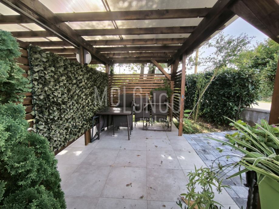 Apartman se sastoji od kuhinje s blagovaonom i dnevnim boravkom, spavaće sobe i kupaone. Apartmanu pripada okućnica od 81 m2, uređena kao sjenica za zajednička druženja, kao i jedno parkirno mjesto.