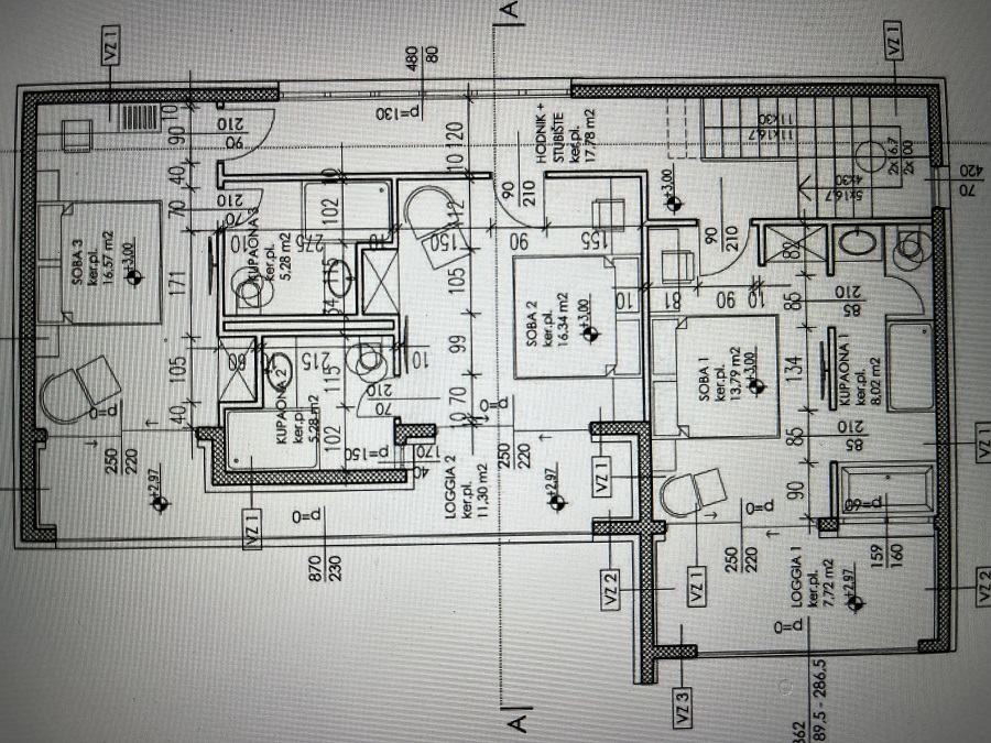 Kat: 3 spavaće sobe s vlastitim kupaonama i loggiama.