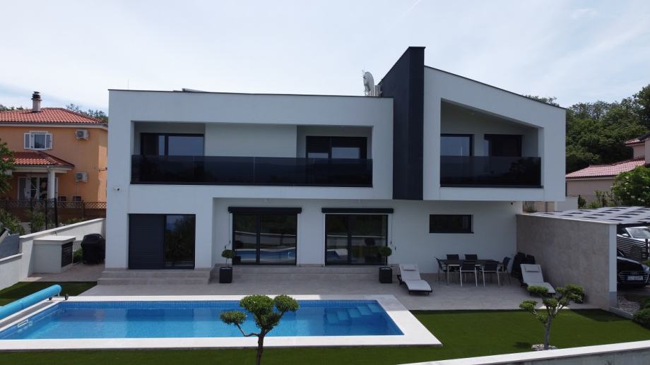 For Sale - New build and entirely furnished house in high quality materials, located above Malinska (Krk), in a beautiful green and peaceful surrounding with a sea view.