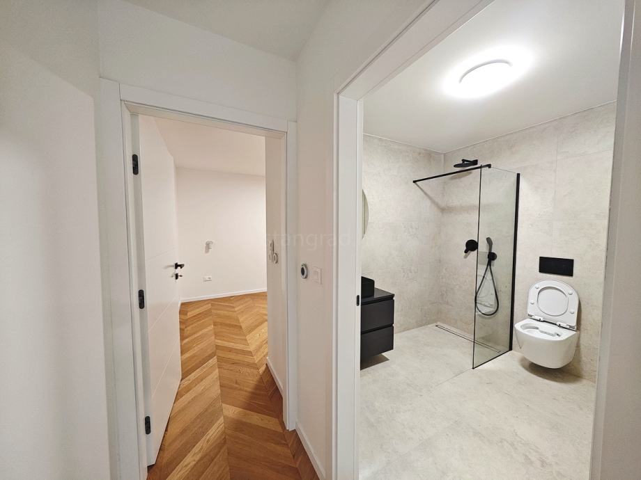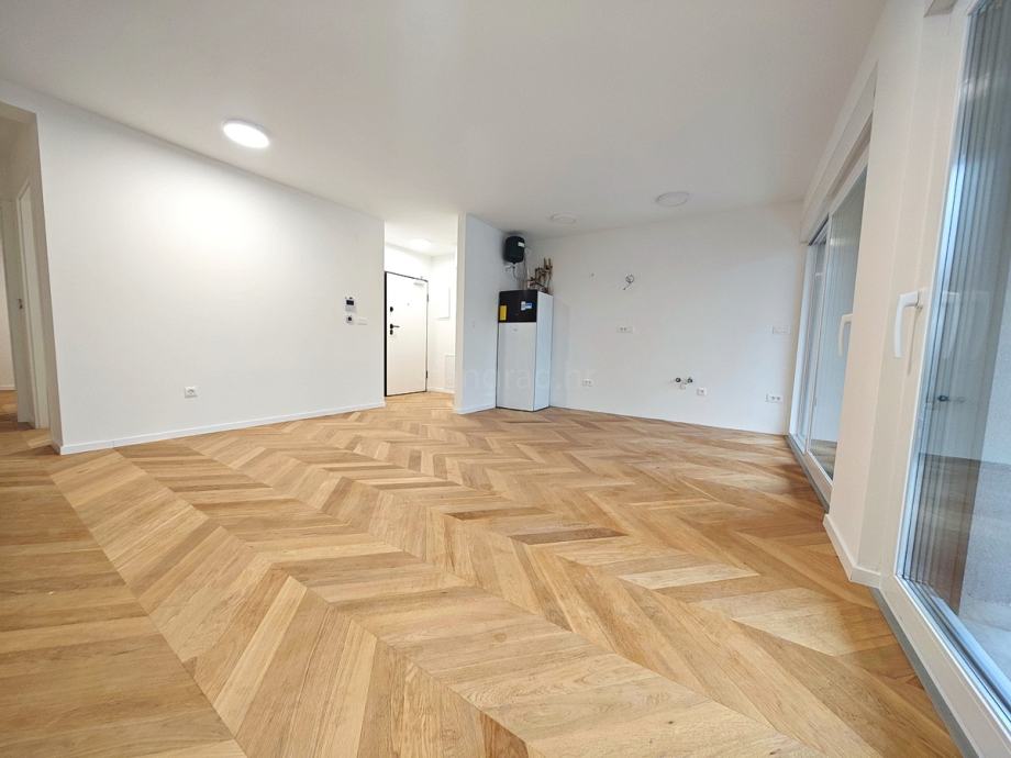 U novom i modernom objektu, apartman se nalazi na prvom katu. Stan ukupne površine 53 m² sastoji se od dnevnog boravka s kuhinjom i blagovaonom, jedne spavaće sobe, kupaonice i velike natkrivene terase. Pripadaju mu dva parkirna mjesta, što ga čini idealnim i praktičnim za život u centru grada.