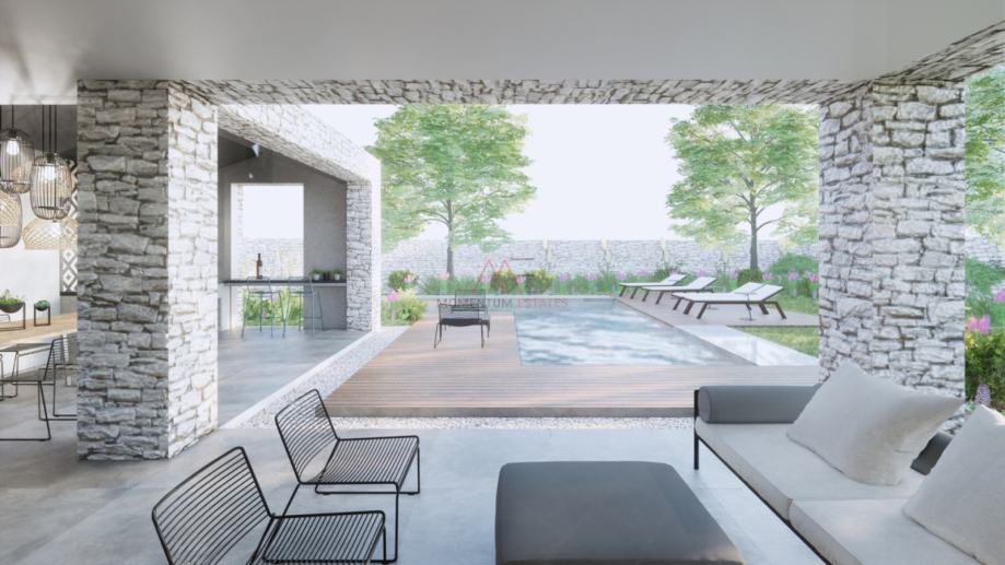 Površina ville iznosi 227 m2, s okućnicom od 700 m2. Eksterijerom dominira bazen, te predivna ljetna kuhinja sa roštiljom.