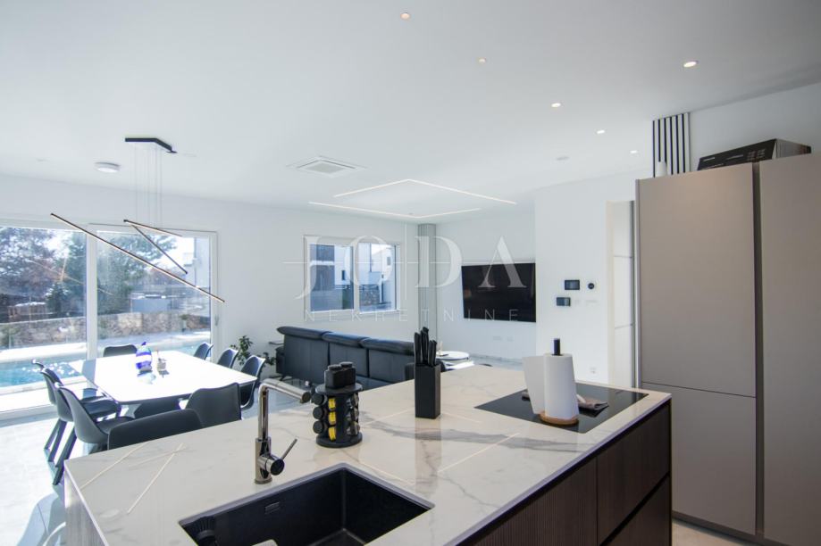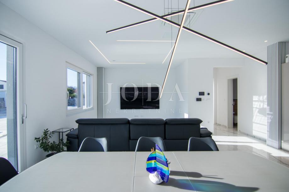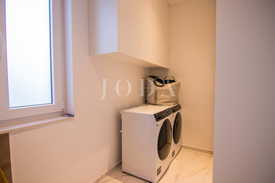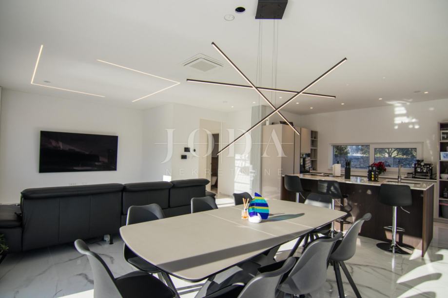 U izgradnju i opremanje ove kuće uložen je izniman trud i pažnja prema svakom detalju, s jasnim ciljem stvaranja nekretnine koja će zadovoljiti i najviše standarde stanovanja. Vanjski dio objekta pokriven je sustavom video nadzora, proveden je optički internet, a posebnu notu luksuza daje integrirano ozvučenje u stropovima svih zajedničkih prostorija.