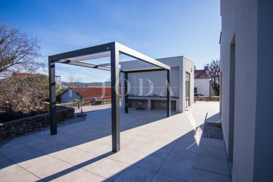 U sklopu okućnice osiguran je prostor za parkiranje više automobila, kao i vanjska kuhinja natkrivena bioklimatskom pergolom, idealna za druženja i boravak na otvorenom. Dodatnu vrijednost daje zaseban prostor predviđen za saunu i teretanu, čime je zaokružena ponuda sadržaja usmjerenih na opuštanje i aktivan stil života.
