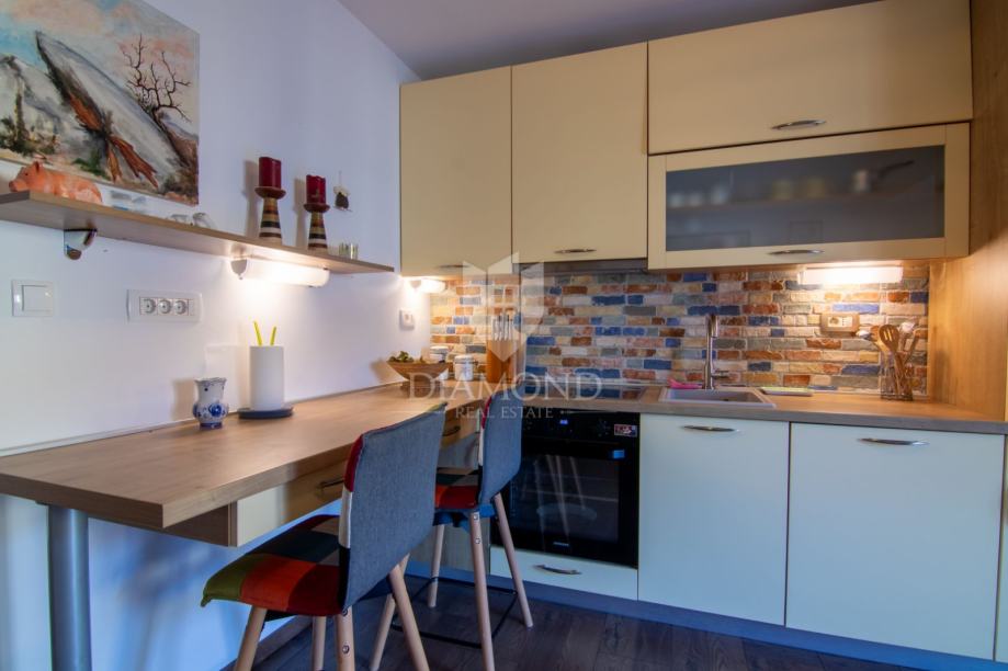 Nekretnina se nalazi u Njivicama, jednom od najtraženijih turističkih mjesta na otoku Krku, poznatom po uređenim plažama, šetnicama i bogatoj ponudi sadržaja. Apartman ima dvije prostrane terase koje omogućuju ugodan boravak na otvorenom, idealne za opuštanje, druženje ili uživanje u mediteranskom okruženju. Unutrašnji prostor je svijetao, moderan i uređen s pažnjom prema detaljima, što dodatno naglašava kvalitetu ove nekretnine.