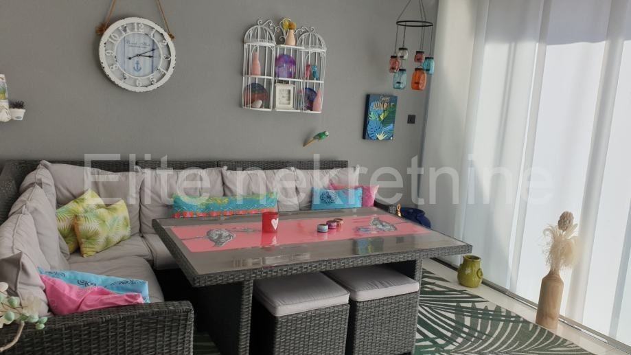 Posredujemo u prodaji stana, apartmana u Njivicama od 70m2. Apartman je smješten u prizemlju zgrade, a sastoji se od dvije spavaće sobe, dnevnog boravka, kuhinje, kupaone, spremišta, zatvorene logie i terase i parkirnog mjesta. Interijer nekretnine je vrlo dobro održavan te kompletno opremljen svim potrebnim tehničkim uređajima, kvalitetnim namještajem, električno podno grijanje i klima uređaj .
