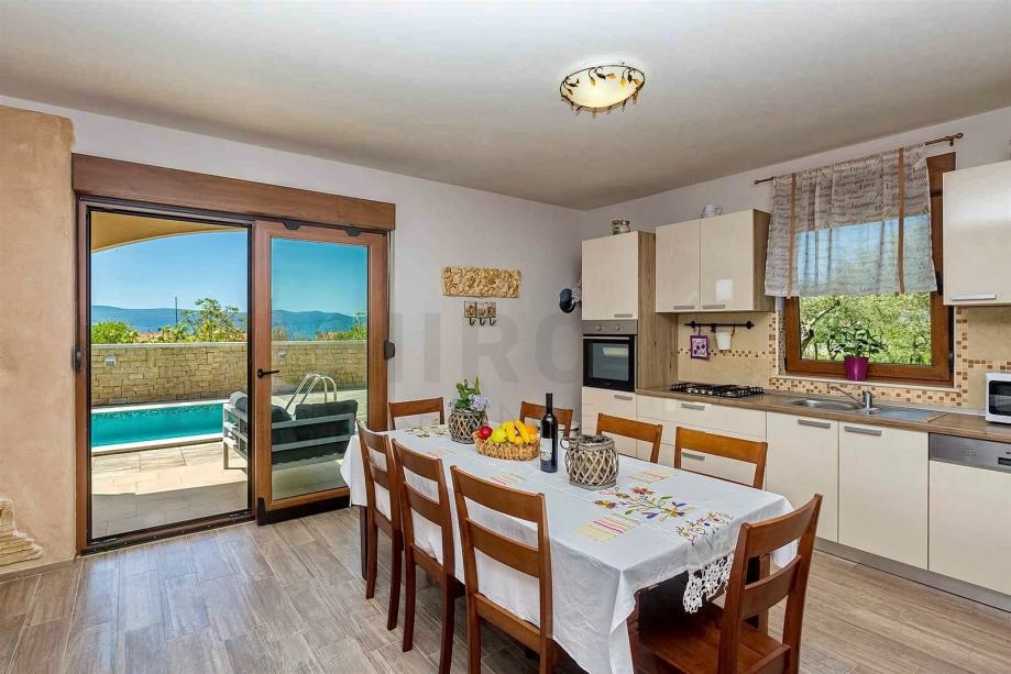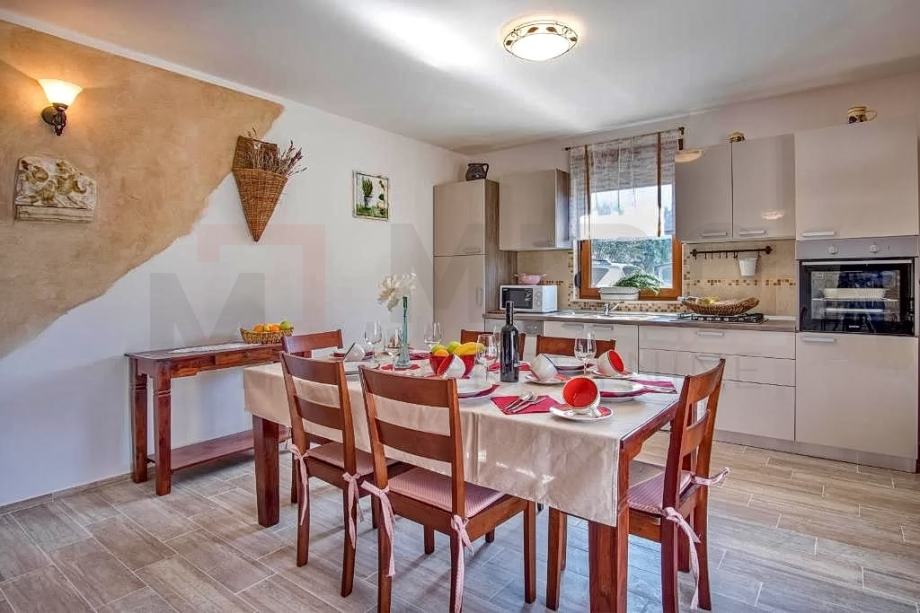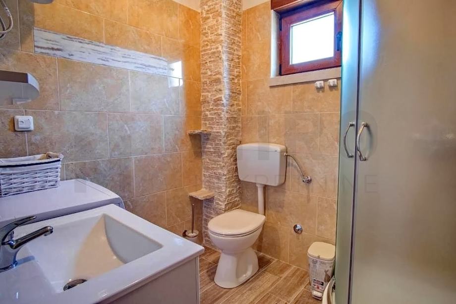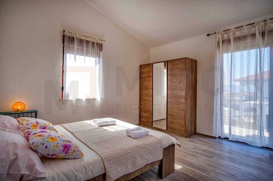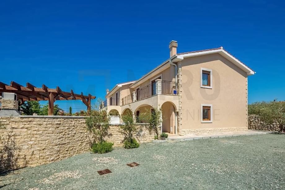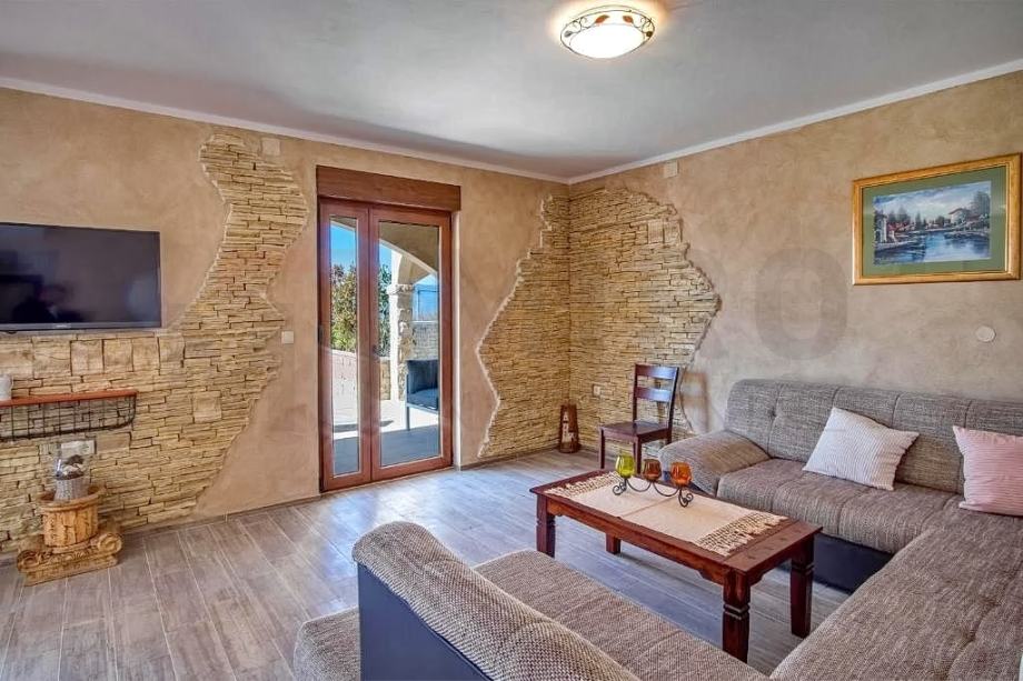 Otok Krk, Krk, okolica, mediteranska dvojna kuća s dvije stambene jedinice i dva bazena s predivnim pogledom na more. Dvojna kuća na mirnoj lokaciji je površine 350 m2, kuća je katnost prizemlje i kat. U prizemlju svake stambene jedinice nalazi se predsoblje, spavaća soba, kupaonica, stepenište, veliki dnevni boravak sa blagovaonicom, kuhinjom objedinjen u jednu cjelinu s koje se pruža izlaz na vanjsku natkrivenu terasu sa sunčalištem i bazenom. Unutarnje stepenice svake stambene jedinice vode na kat gdje se nalaze tri spavaće sobe svaka sa svojom kupaonicom i izlazom na balkon s kojeg se pruža predivan pogled na more. Dvojna kuća ima uređenu okućnicu na kojoj se nalazi sunčalište, dva opremljena bazena, dva vanjska tuša, dvije ostave, posebno mjesto na uređenoj okućnici ima sjenica sa roštiljem. Svaka kuća ima po dva parkirna mjesta. okućnici. U opremu dvojne kuće ubrajaju se visokokvalitetna keramika, PVC stolarija, vrhunske sanitarije, TV, klima uređaji u svim prostorijama. Ova nekretnina je u vlasništvu fizičke osobe. Nekretnina ima uhodani posao iznajmljivanja te stalne goste, prilika za investiciju. Prodavatelj jamči čistu vlasničku dokumentaciju kuće.