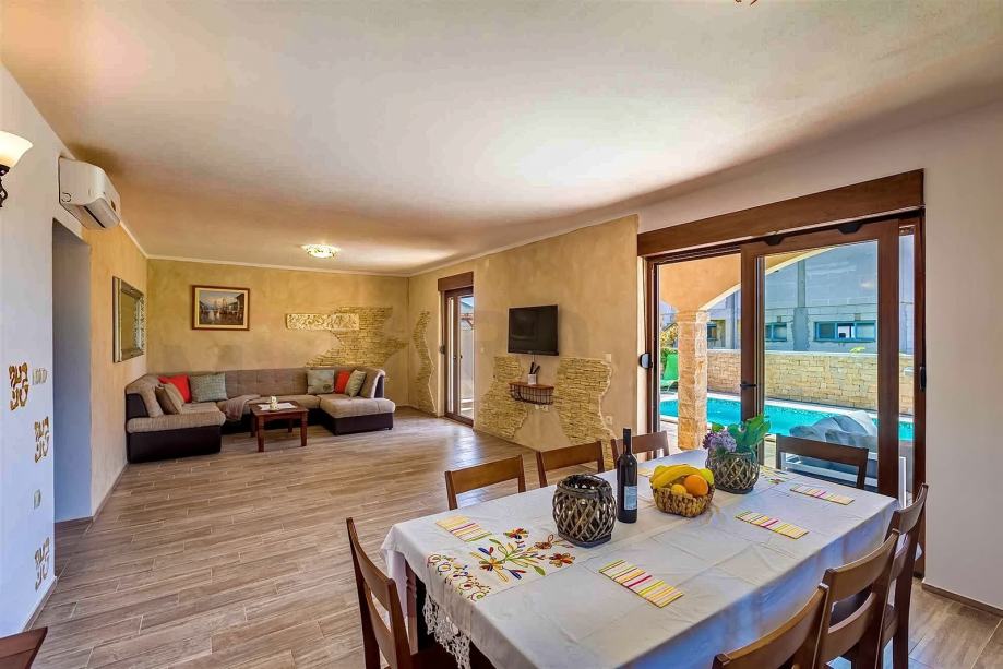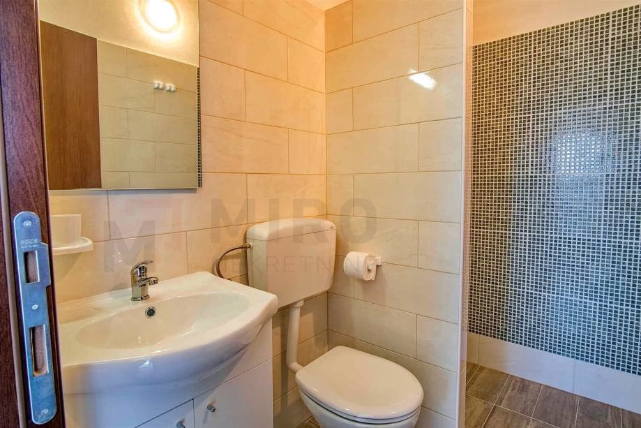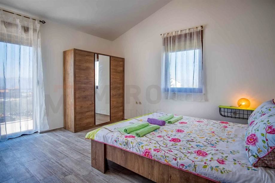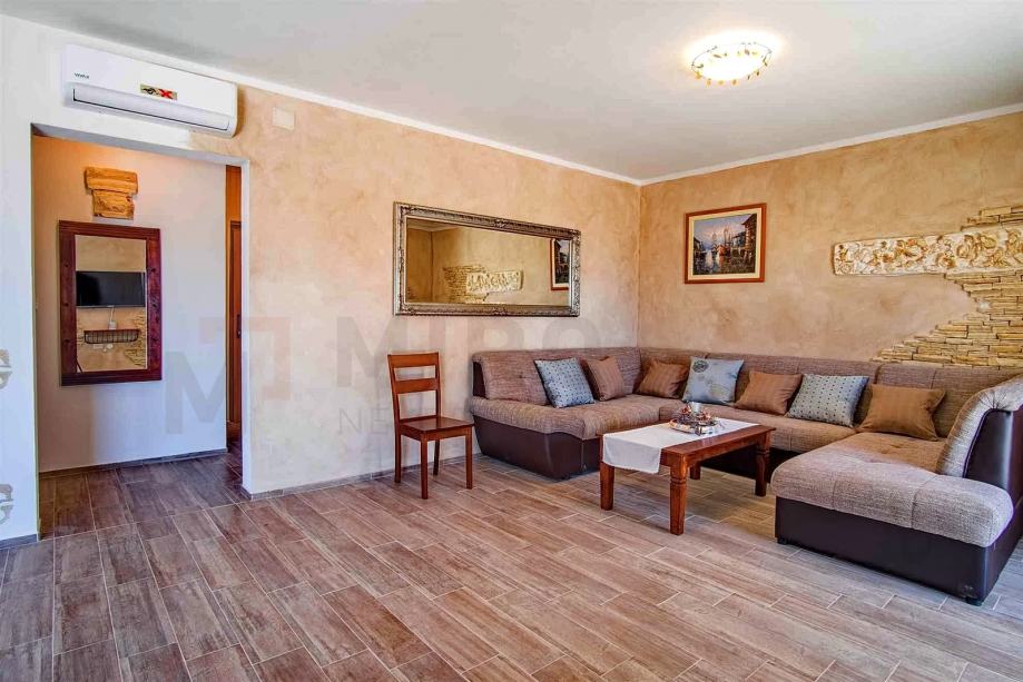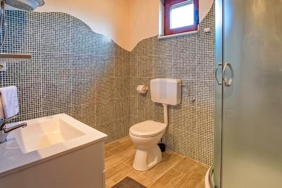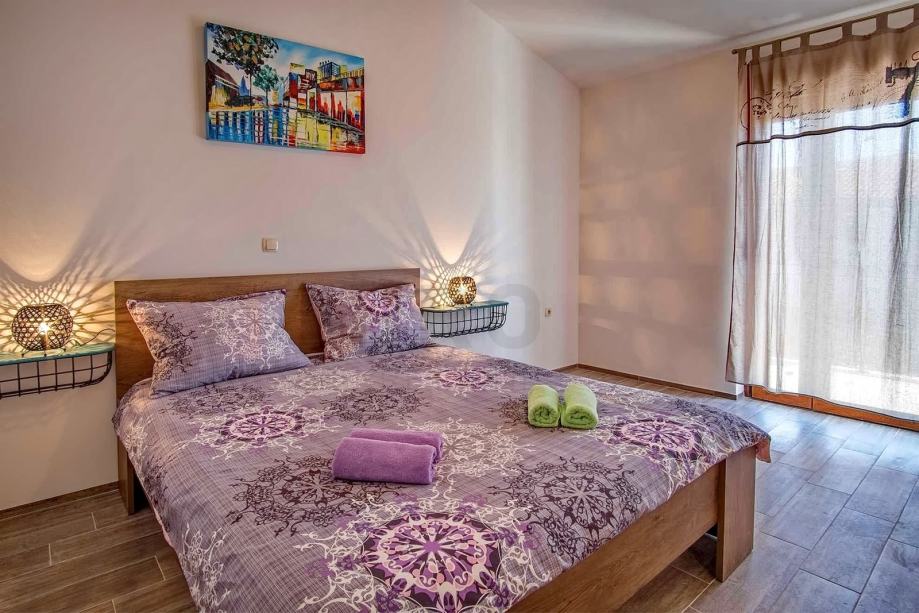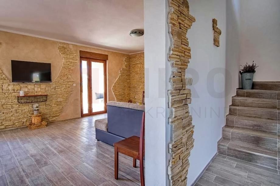 Otok Krk, Krk, okolica, mediteranska dvojna kuća s dvije stambene jedinice i dva bazena s predivnim pogledom na more. Dvojna kuća na mirnoj lokaciji je površine 350 m2, kuća je katnost prizemlje i kat. U prizemlju svake stambene jedinice nalazi se predsoblje, spavaća soba, kupaonica, stepenište, veliki dnevni boravak sa blagovaonicom, kuhinjom objedinjen u jednu cjelinu s koje se pruža izlaz na vanjsku natkrivenu terasu sa sunčalištem i bazenom. Unutarnje stepenice svake stambene jedinice vode na kat gdje se nalaze tri spavaće sobe svaka sa svojom kupaonicom i izlazom na balkon s kojeg se pruža predivan pogled na more. Dvojna kuća ima uređenu okućnicu na kojoj se nalazi sunčalište, dva opremljena bazena, dva vanjska tuša, dvije ostave, posebno mjesto na uređenoj okućnici ima sjenica sa roštiljem. Svaka kuća ima po dva parkirna mjesta. okućnici. U opremu dvojne kuće ubrajaju se visokokvalitetna keramika, PVC stolarija, vrhunske sanitarije, TV, klima uređaji u svim prostorijama. Ova nekretnina je u vlasništvu fizičke osobe. Nekretnina ima uhodani posao iznajmljivanja te stalne goste, prilika za investiciju. Prodavatelj jamči čistu vlasničku dokumentaciju kuće.