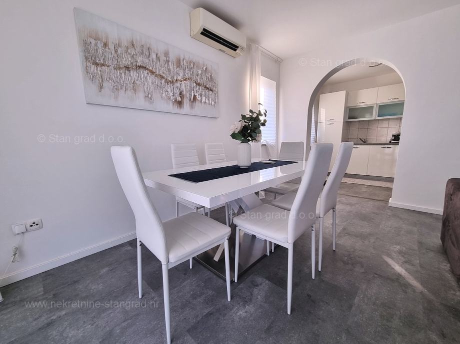 Unutar tradicionalno atraktivne hrvatske jadranske turističke regije otok Krk nudi se uređen i dobro održavan apartman za turistički boravak ili stanovanje. Ovaj je apartman smješten u šarmantnom naselju na vrhunskoj lokaciji nedaleko mora i grada Krka. U naravi je to vrlo prostrani i komforni jednoetažni apartman. U lijepom objektu dobre kvalitete, apartman je smješten na 1. etaži. Površina ovog apartmana iznosi ukupno 84 m2. Unutar navedene površine su dnevni boravak i kuhinja, 2 spavaće sobe, kupaonica i terasa. Unutarnji prostori nekretnine su osobito dobro održavani te u potpunosti opremljeni potrebnim tehničkim uređajima i vrlo kvalitetnim namještajem. Vlasništvo ovog apartmana obuhvaća i mogućnost korištenja zajedničkog dijela okućnice. Vlasnik apartmana na raspolaganju će imati jedno parkirno mjesto. Povrh navedenog, može se napomenuti i da je apartman orijentiran tako da pruža lijep pogled na simpatičan primorski krajolik i bližu okolicu naselja. Predmetni je apartman u vlasništvu fizičke obveze i kod prijenosa vlasništva podliježe obračunu poreza na promet nekretnina u visini 3%. Prodavatelj nekretnine garantira brz prijenos vlasničkih prava te urednu vlasničku i tehničku dokumentaciju. Javite nam se, pobrinut ćemo se da osjećate sigurnost i zadovoljstvo kupnje nekretnine. Ukoliko se odlučite na kupnju nekretnine kod nas, stručni i srdačni tim naše agencije bit će vam na raspolaganju za sve administrativne radnje oko prijenosa vlasništva nekretnine i pripadajućih računa na svoje ime.