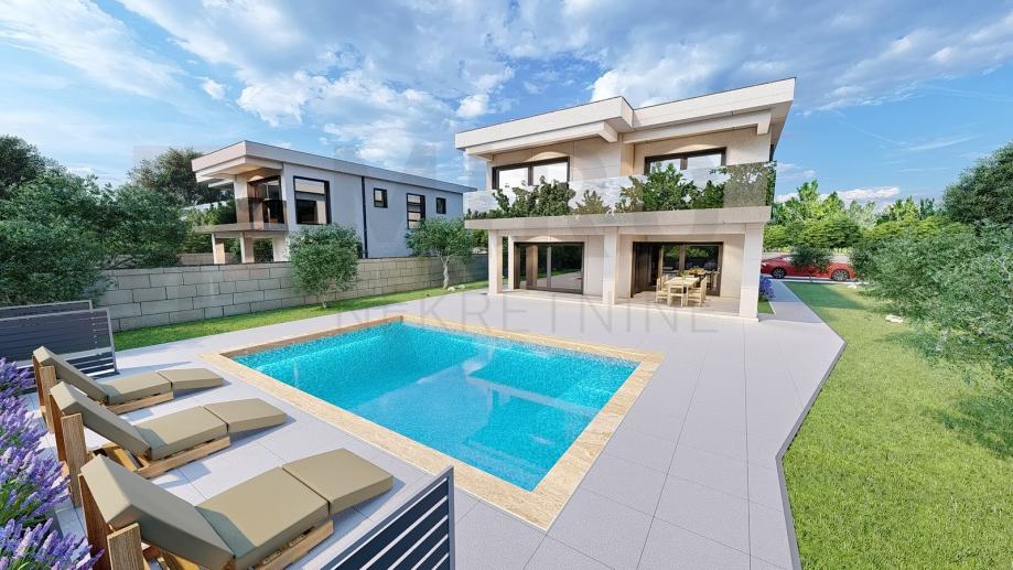 Otok Krk, šira okolica, u ponudi agencije nalazi se samostojeća moderna kuća u izgradnji sa velikom okućnicom i bazenom. Nekretnina stambene površine 179 m2, nalazi se na zemljištu veličine 700 m2. U kući se nalaze četiri spavaće sobe, wc , 4 kupaonica, open space dnevni boravak, kuhinja i blagavaona, natkrivena i nenatkrivena terasa. Svaka soba posjeduje klima uređaj, postavljeno je i podno grijanje na dizalicu topline. Na spomenutoj okućnici nekretnine može se komforno parkirati dva automobila. Kuća je idealna za veću obitelj, kao i za investiciju, turističko iznajmljivanje. Smještena je na mirnoj lokaciji svega 1000m od mora na odličnoj lokaciji u blizini svih potrebnih sadržaja. Nekretnina je u vlasništvu fizičke osobe i kupac je u obvezi plaćanja poreza na promet nekretnine u visini 3%. Prodavatelj nekretnine jamči urednu vlasničku dokumentaciju. Posjetite nas i pronađite kvadrat vašeg doma!