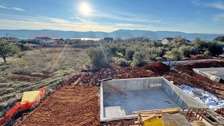 Krk, okolica, kuća u izgradnji s bazenom i lijepim pogledom na more! (prodaja)