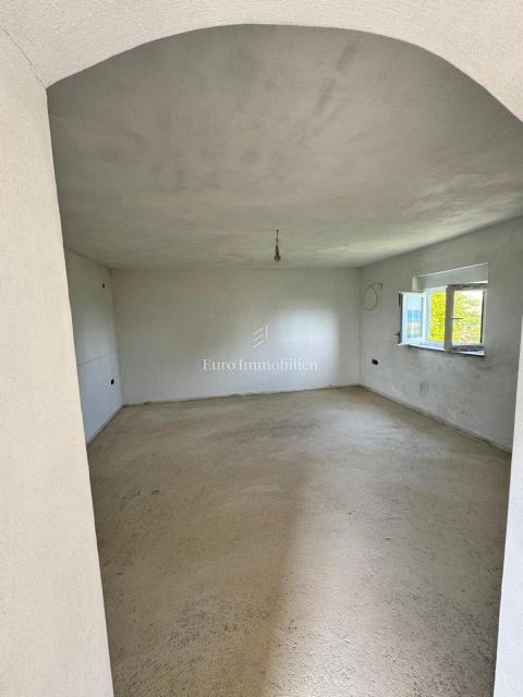 U prizemlju je jedna useljiva stambena jedinica koja se sastoji od ulaznog hodnika, kupaonice, kuhinje s blagovaonom te spavaće sobe, okvirne površine 30 m2. U prizemlju je i odvojena manja ostava. Na katu, kojem se pristupa odvojenim vanjskim stubištem, nalazi se druga stambena jedinica, oko 50m2. Trenutno u visokom roh bau stanju. Sastoji se od dvije spavaće sobe, kupaonice, hodnika i jedne prostorije koja bi služila kao kuhinja i dnevni boravak.