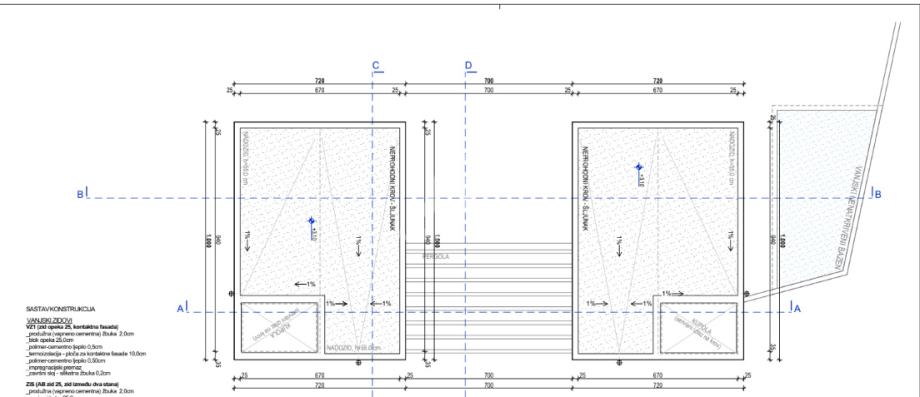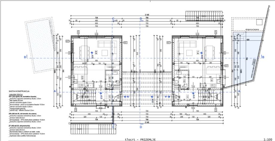 Krk, okolica, luksuzna dvojna kuća sa impozantnim pogledom na more, okružena prirodom. Dvojna kuća od 128,54 m2 (krovna terasa i vanjske površine nisu uračunate u kvadraturu) je katnosti prizemlje +kat. U prizemlju se nalaze kupaonica i tri spavaće sobe od kojih glavna master soba ima en suit kupaonu te walk in ormar. Na katu kuće nalaze se prostrani dnevni boravak sa velikim otvorima koje omogućuju prohodnost prema terasi i bazenu, dnevni boravak je objedinjen sa kuhinjom i blagovaonom. Dvojna kuća sa bazenom biti će opremljena vrhunskom keramikom i sanitarijama, podnim grijanjem te klima uređajima u svakoj sobi. Posebno se ističe krovna terasa od svega 40m2 sa koje se pruža spektakularna panorama. Na okućnici se nalaze uređena zelena površina te dva parkirna mjesta. Ekskluzivna i moderna nekretnina sa puno prednosti, pogodno za turističku djelatnost! Dokumentacija uredna! Očekivani završetak projekta 12/2025. Prodaja po sistemu ključ u ruke!