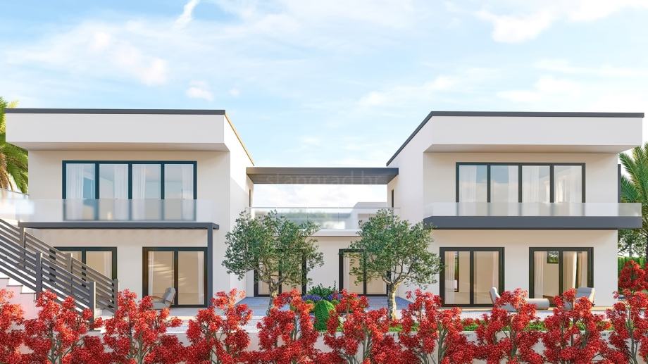 Dodanu vrijednost ovom cijelom objektu daje okućnica oplemenjena bazenom površine 24,5 m2 i sunčalištem te sjenicom. Na okućnici opisane nekretnine mogu se komforno parkirati dva automobila. Osim navedenog, treba napomenuti da kuća ima prelijep panoramski pogled na more. Predviđen rok završetka gradnje je listopad 2026. godine.