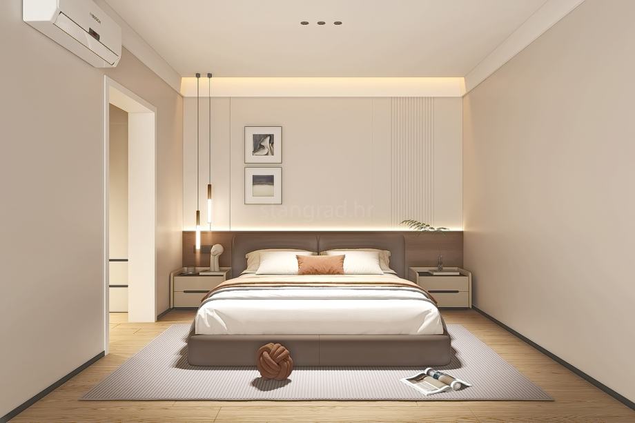 Objekt izvrsne kvalitete izgrađen je na sveukupno 2 prostorno korisne etaže. Nekretnina obuhvaća ukupnu površinu od 140 m2. Sastoji od prizemlja, kata i krovne terase. U prizemlju su smještene 3 spavaće sobe, 2 kupaone, spremište i hodnik te unutarnje stepenice koje vode na kat. Na katu se nalazi dnevni boravak sa kuhinjom, WC i hodnik. Unutarnje stepenice vode do krova gdje je smještena krovna terasa.