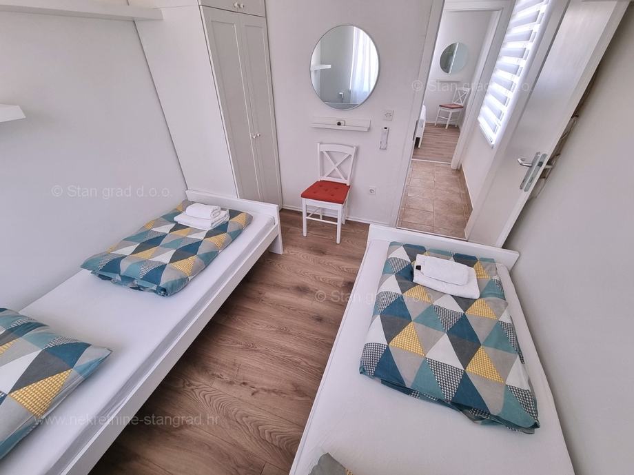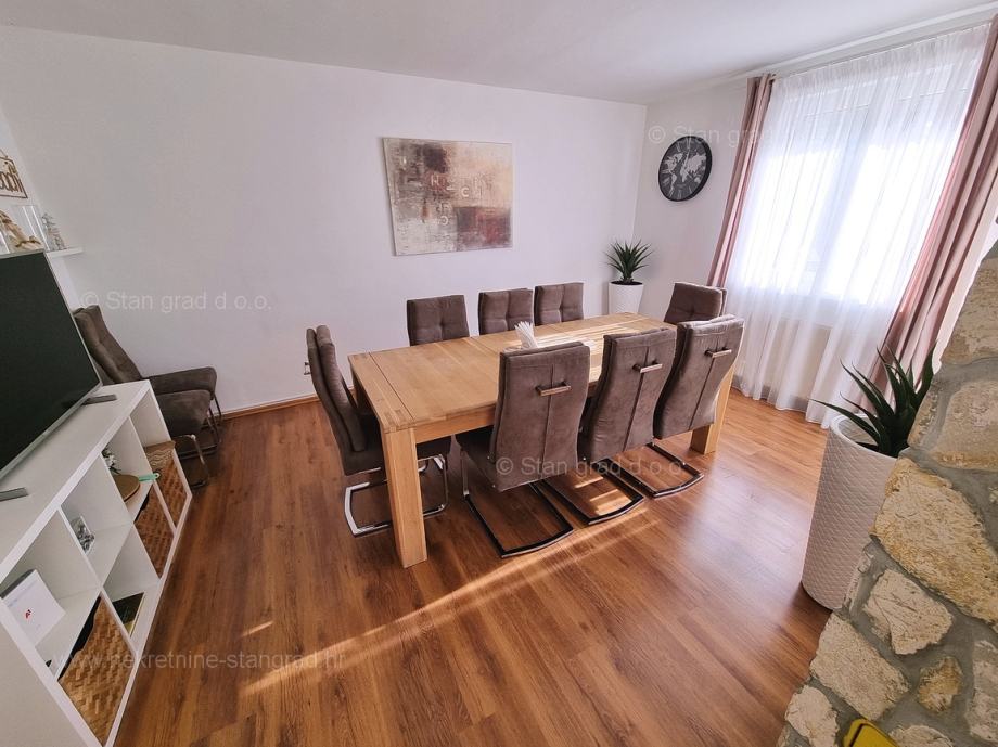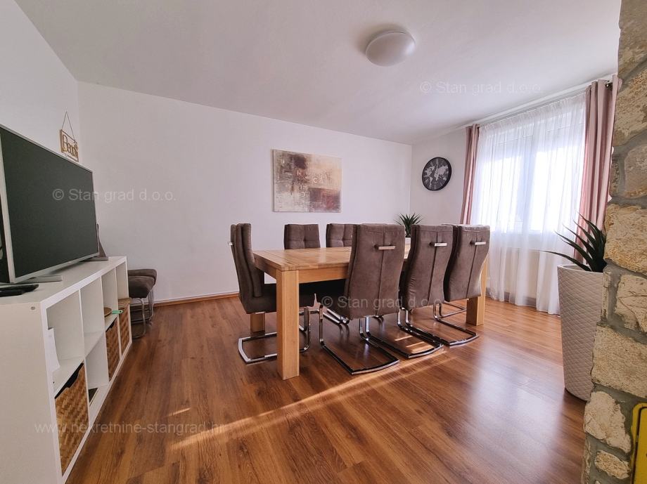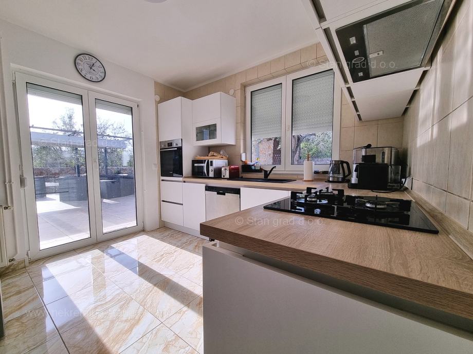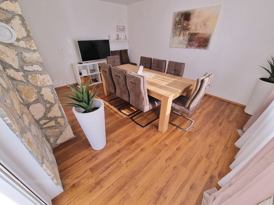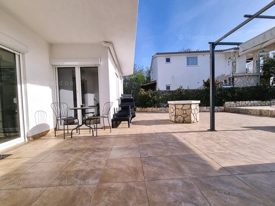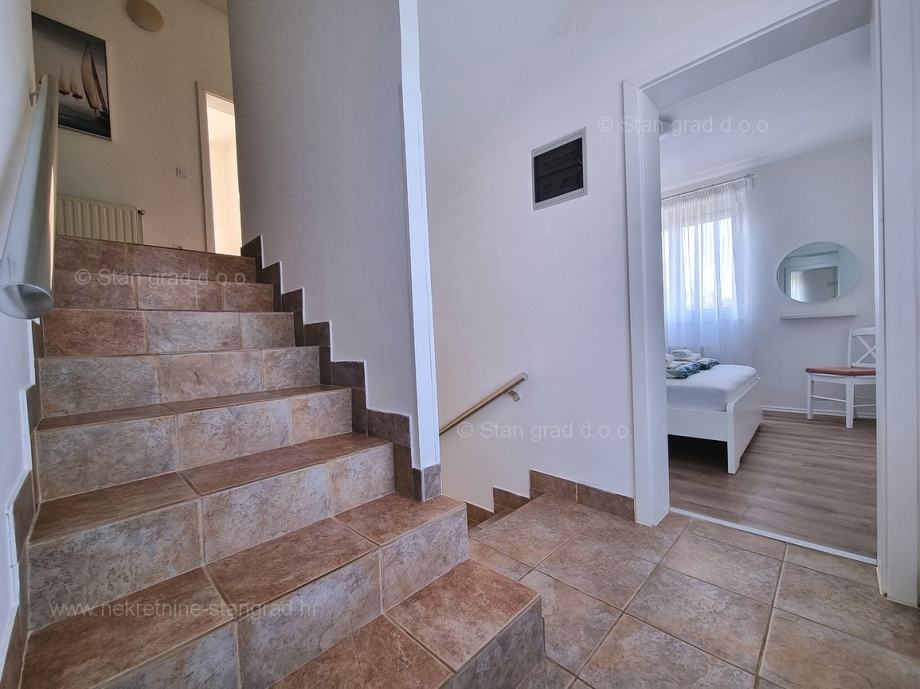 U ponudi naše agencije na super atraktivnom sjevernojadranskom području otok Krk, na Kvarneru, prodaje se potpuno uređena turistička kuća koja pruža savršen ugođaj provođenja godišnjih i vikend odmora. Ova povoljna kuća se nalazi u okolici grada Krka, na zelenoj lokaciji bez gradske buke. Gledajući strukturno, ovo je samostojeća kuća katnica. Suvremeno građena kuća se sastoji od prostora raspoređenog na ukupno 2 etaže. Kuća je sagrađena kao jednoobiteljska građevina. Ukupna površina obuhvaćena ovom kućom je 200 m2. Tom površinom obuhvaćeni su dnevni boravak i kuhinja, 5 spavaćih soba, 3 kupaonice i terasa. Interijer nekretnine je kompletno opremljen novim, kvalitetnim tehničkim uređajima te jedinstveno oblikovanim namještajem. Dodanu vrijednost ovom cijelom objektu daje okućnica oplemenjena bazenom i sunčalištem. U vrtu ove kuće je dovoljno prostora za parkiranje dva automobila. Osim navedenog, treba napomenuti da kuća ima lijep pogled na ovo primorsko mjesto. Predmetna je kuća u vlasništvu fizičke obveze i kod prijenosa vlasništva podliježe obračunu poreza na promet nekretnina u visini 3%. Prodavatelj jamči čistu vlasničku dokumentaciju kuće te lagan prijenos nekretnine. Naš vas tim očekuje na istaknutoj adresi kvarnerskog ureda tvrtke na otoku Krku. Odlučite li se za nas, stručni tim posredničkog ureda Stan Grad Immobilien će vam sa zadovoljstvom pomoći kod prijenosa vlasništva nekretnine i računa za komunalne priključke na svoje ime.