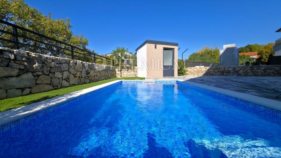 Okolica grada Krka, prodaja, moderna novogradnja s prekrasnim pogledom na more, bazenom, okućnicom, na mirnoj lokaciji s puno intime!