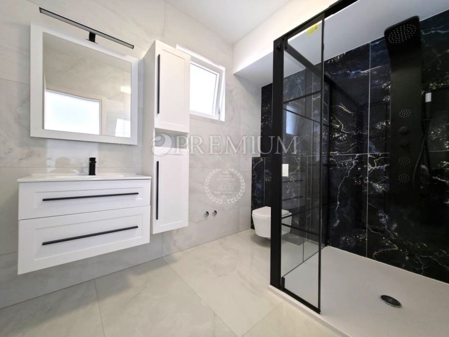 Kvalitetno, moderno, novo, opremljeno s Daikin klima uređajima, solarnim panelima na krovu, kaminom u dnevnom boravku, stolarijom koja je kombinacija PVC+ALU, vrhunskim sanitarijama i keramikom, video nadzorom, alarmnim sustavom.