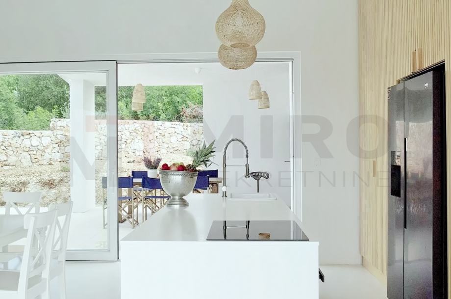Otok Krk, Krk, šire područje, prodaja nove, moderne mediteranske prizemnice površine 135 m2 i pogledom na more, na parceli površine 700 m2! Nekretnina se sastoji od dnevne sobe s kuhinjom i blagovaonom, hodnika, tri spavaće sobe s vlastitim kupaonicama, toaleta, spremišta, dvije natkrivene terase površine 31,56 m2 i 21,88 m2 te sunčališta s bazenom od 30 m2. Vrhunska kvaliteta gradnje i opreme, klimatizacija, moderan dizajn, podno grijanje, unutarnji kamin, okućnica uređena mediteranskim biljem, dva parkirna mjesta na okućnici. Nekretnina je u vlasništvu fizičke osobe. Prodavatelj garantira uredne dokumente i brz prijenos vlasništva. Posjetite nas i pronađite kvadrat vašeg doma!