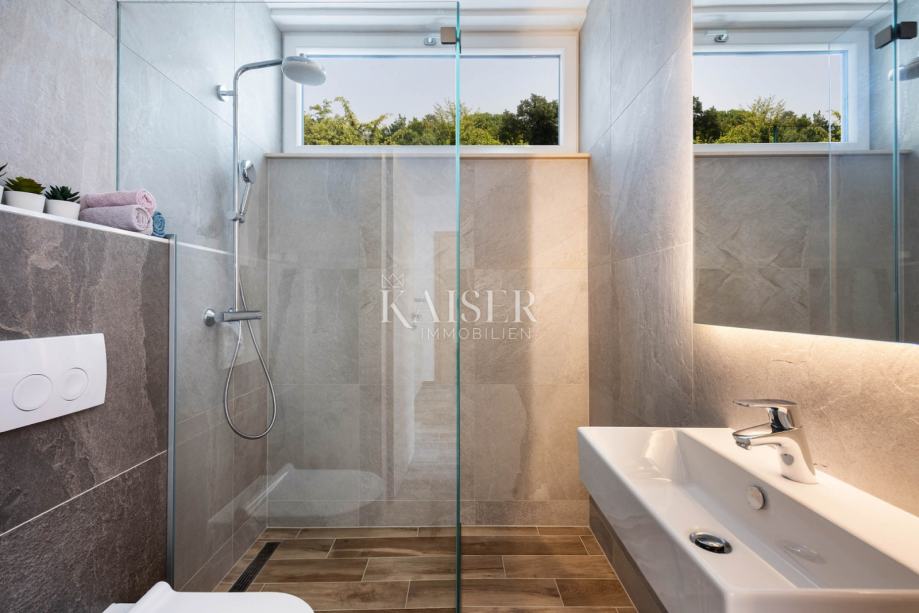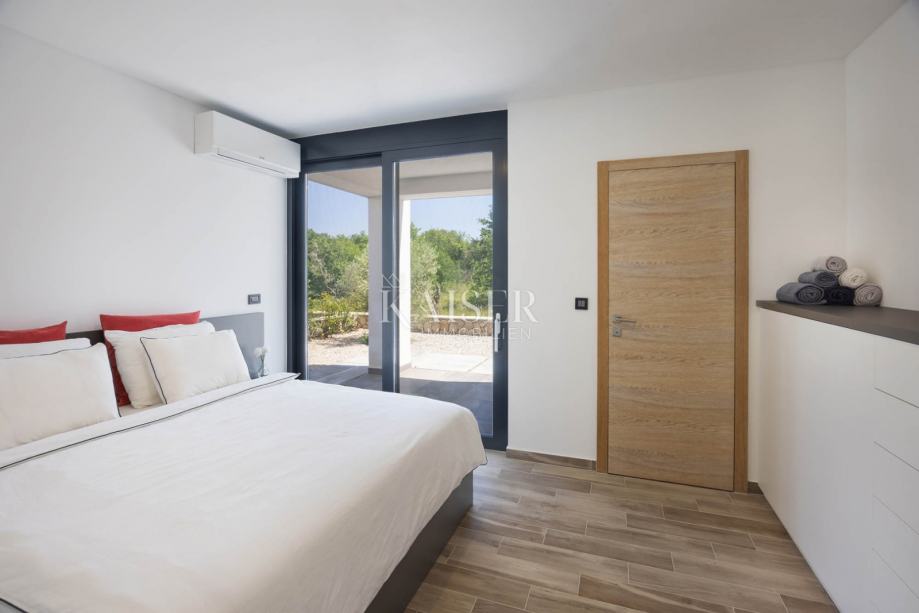 Kaiser immobilien posreduje u prodaji luksuzno opremljene moderne ville u okolici Krka, sa pogledom na more.