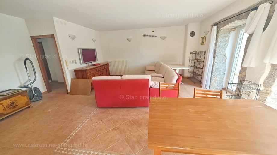Iz odlične ponude nekretnina u agenciji Stan Grad Immobilien, izdvaja se vrlo lijep apartman u kvalitetnom i poželjnom obalnom jadranskom odredištu otok Krk. Navedeni apartman je smješten u okolici grada Krka, na mirnoj poziciji malo podalje od prometne gužve, ali prometno odlično povezanoj s centrom grada Krka i priobaljem. Radi se u naravi o udobnom i srednje velikom jednoetažnom apartmanu dobrog rasporeda prostorija. U okviru vrlo lijepe građevine, apartman je pozicioniran na prizemnoj etaži. Površina ovog apartmana iznosi ukupno 85 m2. Tom površinom obuhvaćeni su ulazni hodnik, dnevni boravak i kuhinja, 2 spavaće sobe, kupaonica i 3 terase. Interijer nekretnine je vrlo dobro održavan te kompletno opremljen svim potrebnim tehničkim uređajima i kvalitetnim namještajem. Vlasništvo ovog apartmana obuhvaća i mogućnost korištenja zajedničkog dijela dvorišta predmetnog objekta na koje se nalazi bazen i sunčalište. U vlasništvu ovog apartmana je uređen parkirni prostor za parkiranje dva automobila. Osim ranije navedenih svojstava, ovaj apartman ima pogled na uređenu okolicu i prirodni krajolik. Ovaj je apartman vlasništvo fizičke osobe pa je kupac prilikom prijepisa njegovog vlasništva na svoje ime u obvezi plaćanja poreza na promet u visini 3%. Vlasnik nekretnine garantira za urednost relevantnih vlasničkih dokumenata i mogućnost brzog transfera vlasništva apartmana na kupca. Naše osoblje će se pobrinuti da se na Kvarneru osjećate kao kod kuće. Posjetite nas na otoku Krku. Kupcu ove nekretnine će prodajni tim agencije Stan Grad Immobilien rado pomoći kod prijenosa vlasništva nekretnine u zemljišnu knjigu te prijenosa računa za struju, vodu i odvoz smeća na svoje ime.