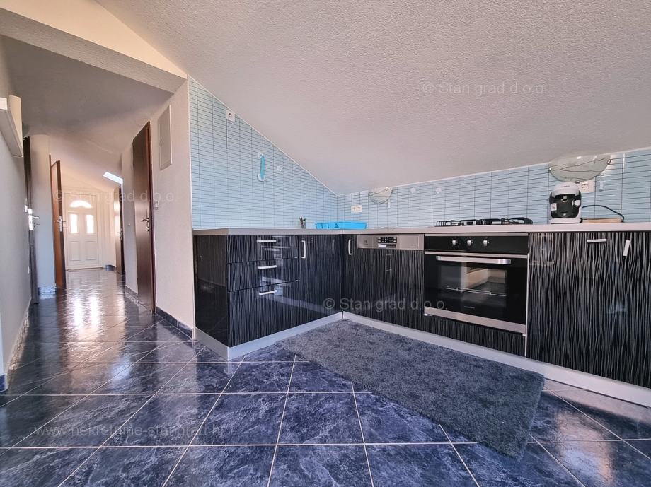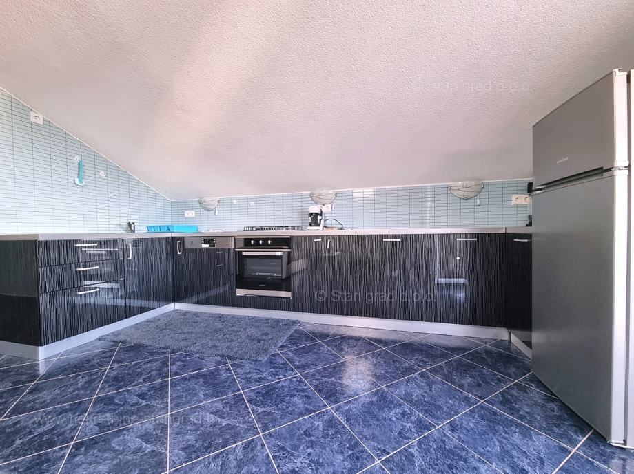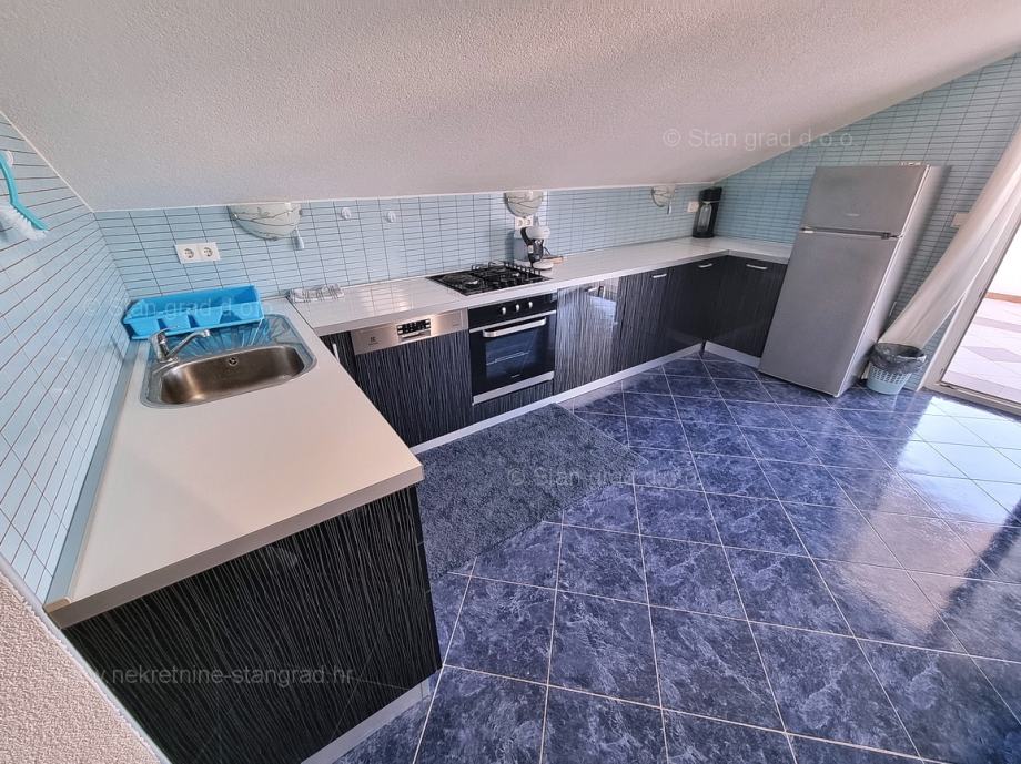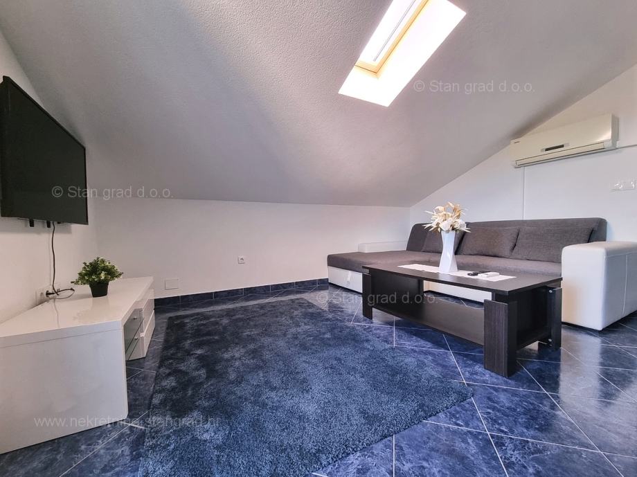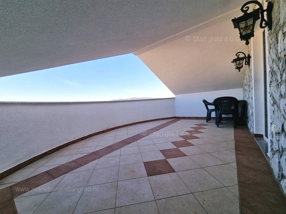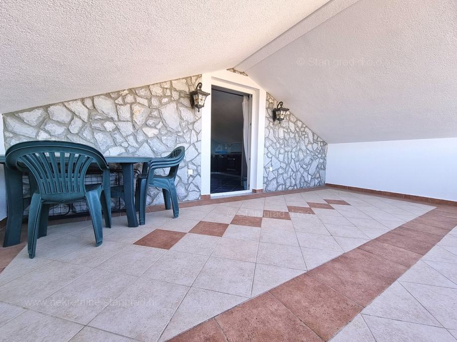 Unutar tradicionalno atraktivne hrvatske jadranske turističke regije otok Krk nudi se uređen i dobro održavan apartman za turistički boravak ili stanovanje. Ovaj je apartman smješten u šarmantnom naselju na vrhunskoj lokaciji nedaleko mora i grada Krka. U naravi je to vrlo prostrani i komforni jednoetažni apartman. U lijepoj zgradi dobre kvalitete, apartman je smješten u potkrovlju. Površina ovog apartmana iznosi ukupno 82 m2. Unutar navedene površine su dnevni boravak i kuhinja, 3 spavaće sobe, kupaonica i terasa. Unutarnji prostori nekretnine su osobito dobro održavani te u potpunosti opremljeni potrebnim tehničkim uređajima i vrlo kvalitetnim namještajem. Nužno je podvući i to da je apartman vezan s pripadajućim manjim i dobro uređenim dvorištem. Vlasnik apartmana na raspolaganju će imati jedno parkirno mjesto. Povrh navedenog, može se napomenuti i da je apartman orijentiran tako da pruža lijep pogled na simpatičan primorski krajolik i bližu okolicu naselja. Predmetni je apartman u vlasništvu fizičke obveze i kod prijenosa vlasništva podliježe obračunu poreza na promet nekretnina u visini 3%. Prodavatelj nekretnine garantira brz prijenos vlasničkih prava te urednu vlasničku i tehničku dokumentaciju. Vaš partner Stan Grad Immobilien srdačno će vas dočekati na Kvarneru i pobrinuti za Vaš siguran i uspješan osjećaj kupovine nekretnine. Osim pronalaska i pokazivanja nekretnine, posrednik Stan Grad Immobilien asistirati će vam u svim potrebnim radnjama vezanim za prijenos vlasništva i preuzimanje nekretnine.
