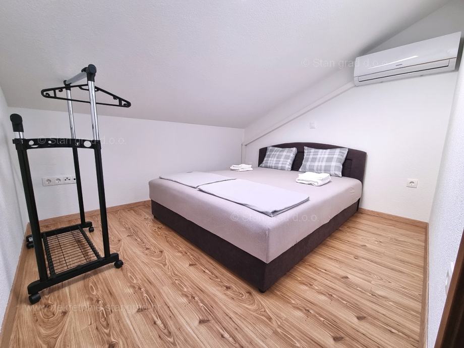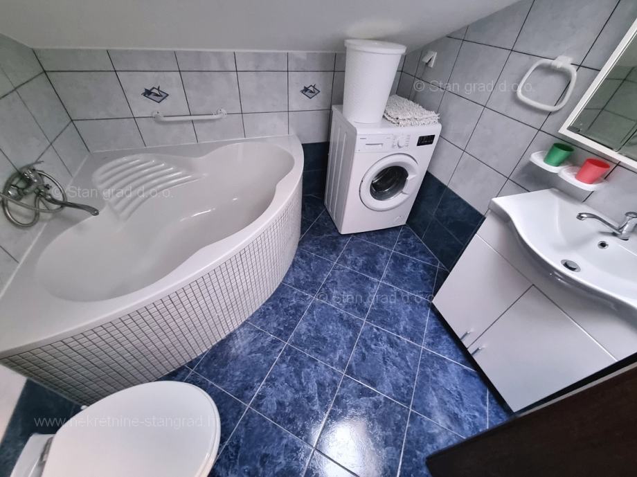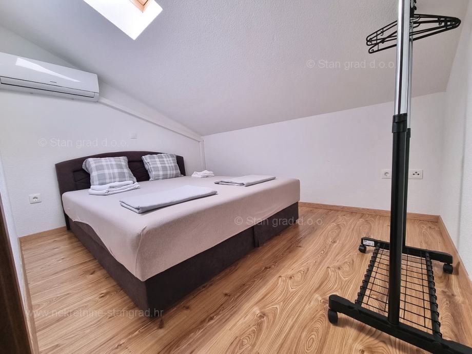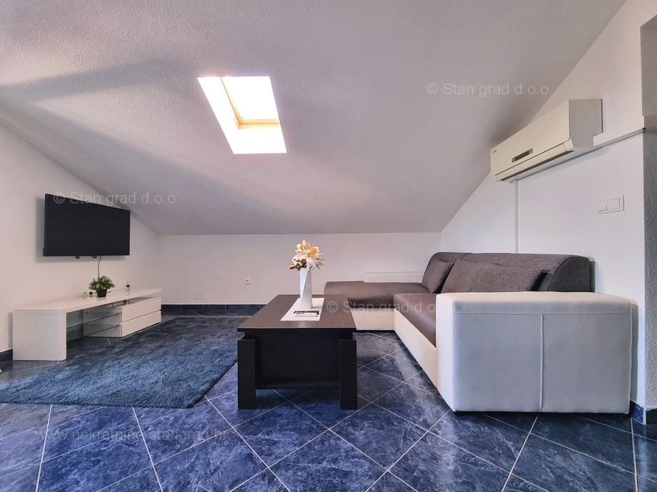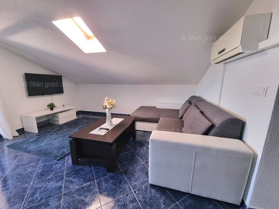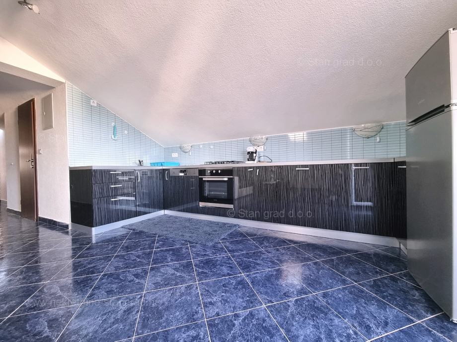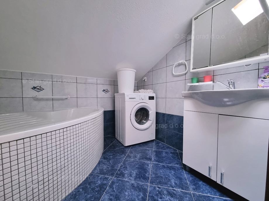 Unutar tradicionalno atraktivne hrvatske jadranske turističke regije otok Krk nudi se uređen i dobro održavan apartman za turistički boravak ili stanovanje. Ovaj je apartman smješten u šarmantnom naselju na vrhunskoj lokaciji nedaleko mora i grada Krka. U naravi je to vrlo prostrani i komforni jednoetažni apartman. U lijepoj zgradi dobre kvalitete, apartman je smješten u potkrovlju. Površina ovog apartmana iznosi ukupno 82 m2. Unutar navedene površine su dnevni boravak i kuhinja, 3 spavaće sobe, kupaonica i terasa. Unutarnji prostori nekretnine su osobito dobro održavani te u potpunosti opremljeni potrebnim tehničkim uređajima i vrlo kvalitetnim namještajem. Nužno je podvući i to da je apartman vezan s pripadajućim manjim i dobro uređenim dvorištem. Vlasnik apartmana na raspolaganju će imati jedno parkirno mjesto. Povrh navedenog, može se napomenuti i da je apartman orijentiran tako da pruža lijep pogled na simpatičan primorski krajolik i bližu okolicu naselja. Predmetni je apartman u vlasništvu fizičke obveze i kod prijenosa vlasništva podliježe obračunu poreza na promet nekretnina u visini 3%. Prodavatelj nekretnine garantira brz prijenos vlasničkih prava te urednu vlasničku i tehničku dokumentaciju. Vaš partner Stan Grad Immobilien srdačno će vas dočekati na Kvarneru i pobrinuti za Vaš siguran i uspješan osjećaj kupovine nekretnine. Osim pronalaska i pokazivanja nekretnine, posrednik Stan Grad Immobilien asistirati će vam u svim potrebnim radnjama vezanim za prijenos vlasništva i preuzimanje nekretnine.