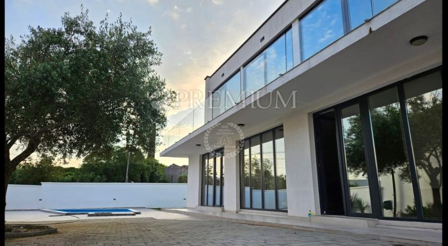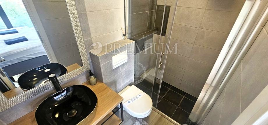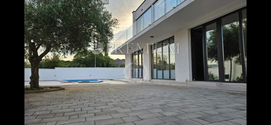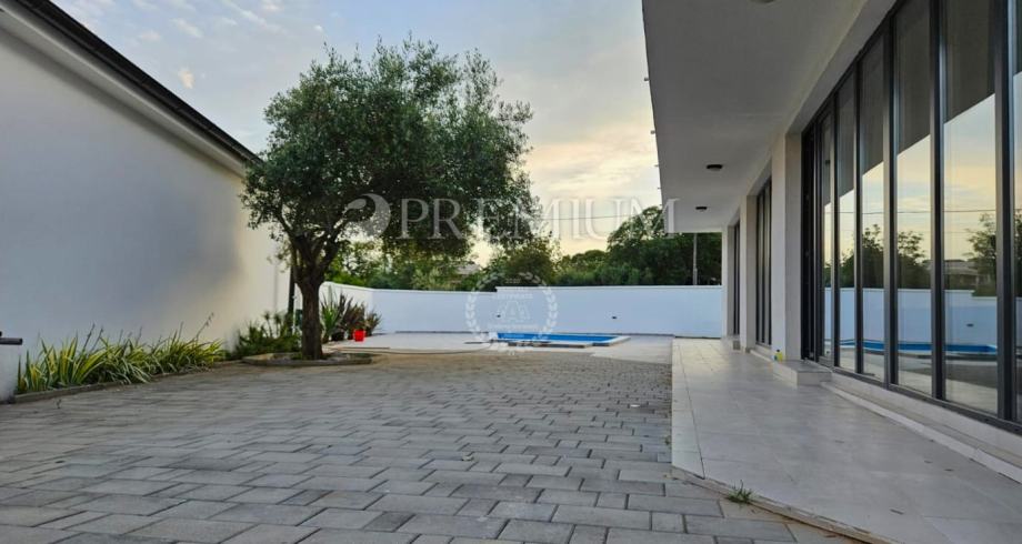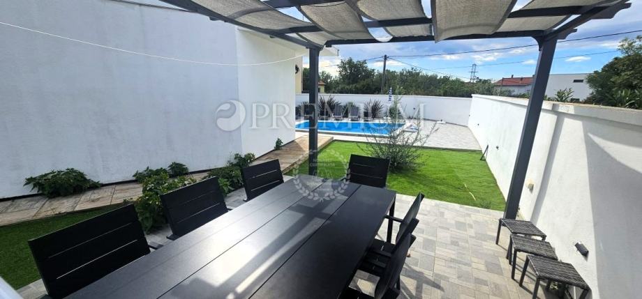 Okućnica je površine 403 m2, na njoj se nalazi bazen od 15 m2, sunčalište, vanjski tuš, roštilj, i prostor za druženje.