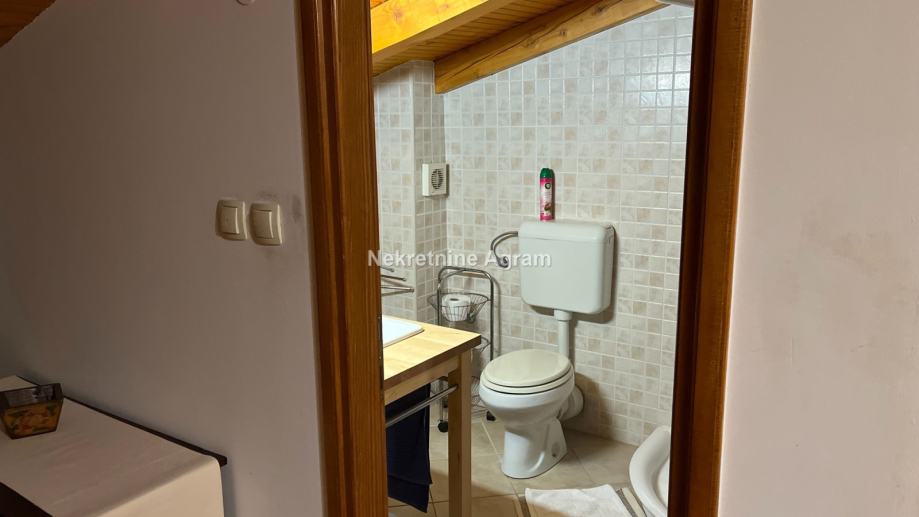 Okućnica je cca 250 m2 , jacuzzi, vanjski prostor za roštiljanje, pomoćni objekt preuređen u spremište.Parkirna mjesta za 5 automobila.Idealno za privatnost i ugodu prekrasnog i mirnog okruženja.