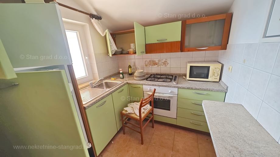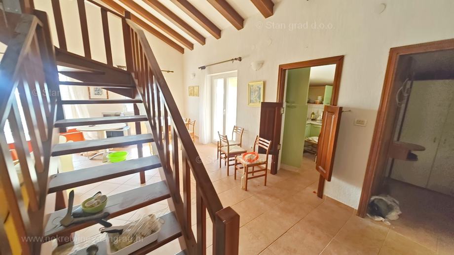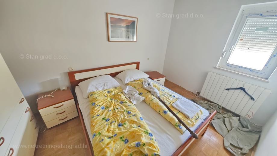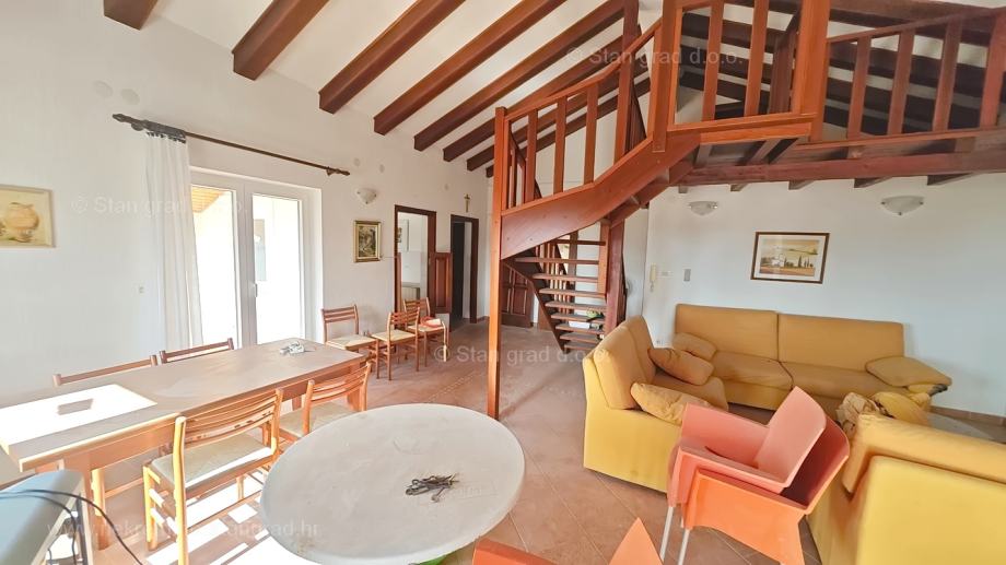U našoj ponudi je vrlo kvalitetan apartman za turistički boravak na sjevernom Jadranu na uobičajeno poželjnoj kvarnerskoj destinaciji otok Krk. Navedeni se apartman nalazi na kvalitetnoj i urbaniziranoj poziciji nedaleko mora i središta grada Krka. Razmatrajući nekretninu prema vrsti, ovo je prostrani jednoetažni apartman. U objektu vrhunske kvalitete, apartman je pozicioniran na 1. etaži. Površina ovog apartmana iznosi ukupno 105 m2. U navedenoj površini sadržani su ulazni hodnik, dnevni boravak i kuhinja s blagovaonicom, 2 spavaće sobe, kupaonica i tri terase. Također, bitno je napomenuti da se u apartmanu nalazi galerija koja se može urediti prema željama novog vlasnika. Interijer nekretnine je vrlo dobro održavan te kompletno opremljen svim potrebnim tehničkim uređajima i kvalitetnim namještajem. Vlasništvo ovog apartmana obuhvaća i mogućnost korištenja zajedničkog dijela dvorišta predmetnog objekta na kojem se nalazi bazen i sunčalište. U vlasništvu ovog apartmana je uređen parkirni prostor za parkiranje dva automobila. Povrh navedenog, može se napomenuti i da je apartman orijentiran tako da pruža lijep pogled na simpatičan primorski krajolik i bližu okolicu naselja. Ovaj je apartman vlasništvo fizičke osobe pa je kupac prilikom prijepisa njegovog vlasništva na svoje ime u obvezi plaćanja poreza na promet u visini 3%. Prodavatelj nekretnine garantira brz prijenos vlasničkih prava te urednu vlasničku i tehničku dokumentaciju. Posjetite nas na otoku Krku i uvjerite se da nam je vaše zadovoljstvo prioritet. Poklonite li nam svoje povjerenje, agencija Stan Grad Immobilien rado će vam pomoći u prijenosu vlasničkih prava ove nekretnine te računa za njene komunalne priključke i usluge na vaše ime.