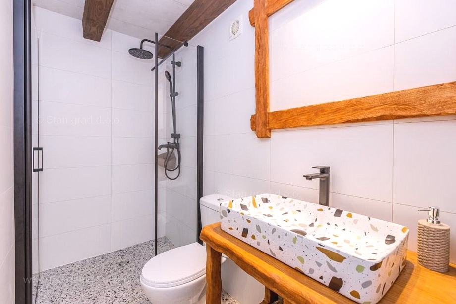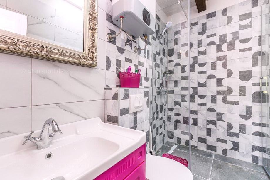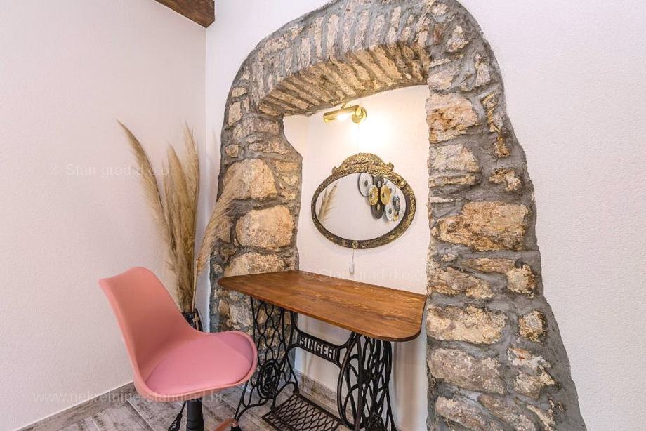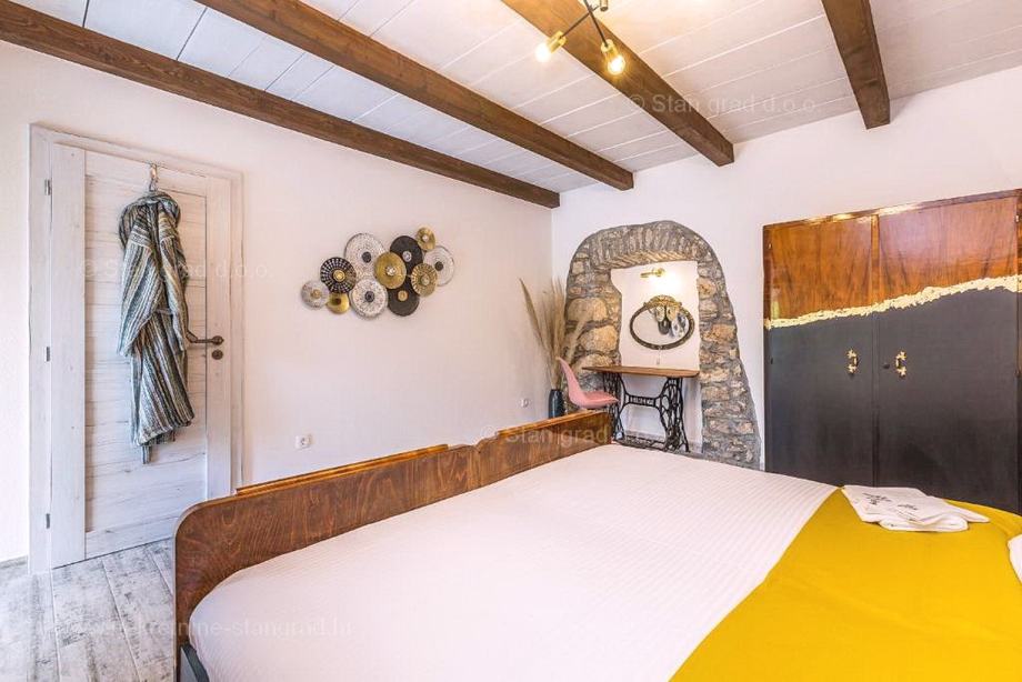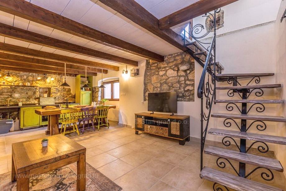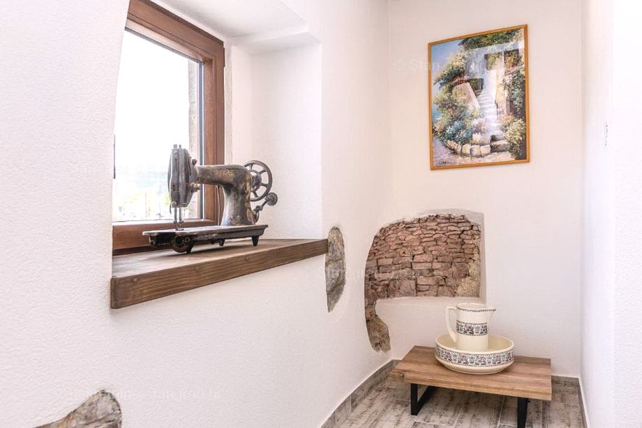 Iz ponude nekretnina agencije Stan Grad Immobilien na naprednom kvarnerskom području izdvojena je romantična turistička kuća u atraktivnoj turističkoj destinaciji i biseru Jadrana, na otoku Krku. Nekretnina se nalazi nadomak grada Krka, na lokaciji koja nudi uživanje u zelenilu prirode. Strukturno, ovo je dvojna kuća katnica. Lijepo uređena kuća sastoji se od sveukupno 2 prostorno korisne etaže. Površina ove renovirane kamene kuće iznosi ukupno 80 m2. Tom površinom obuhvaćeni su dnevni boravak i kuhinja, kupaonica i natkrivena terasa u prizemlju, a na katu 2 spavaće sobe, kupaonica i krovna terasa na kojoj se nalazi jacuzzi i sunčalište s prekrasnim pogledom na more. Odlično održavana unutrašnjost nekretnine je u potpunosti uređena kvalitetnim namještajem i svom potrebnom tehničkom opremom. Površina dvorišta kuće daje mogućnost komfornog parkiranja jednog automobila. Osim ranijih karakteristika, važno je kazati kuća ima lijep pogled na more i priobalje. Ova je kuća vlasništvo fizičke osobe i na prijenos njenog vlasništva obračunava se porez na promet nekretnina u visini 3%. Prodavatelj ove kuće jamči kompletnu i urednu dokumentaciju te jednostavan prijenos nekretnine na kupca U ovom velikom koraku, vaš partner Stan Grad Immobilien tu je da vam pruži svu potrebnu podršku i sigurnost u kupovini nekretnine. Osim profesionalnog obilaska i prezentacije nekretnine te njenog pravnog statusa, srdačno osoblje naše agencije će kupcu nekretnine sa zadovoljstvom pomoći u prijenosu vlasničkih prava te prijenosu računa za komunalne usluge na svoje ime.