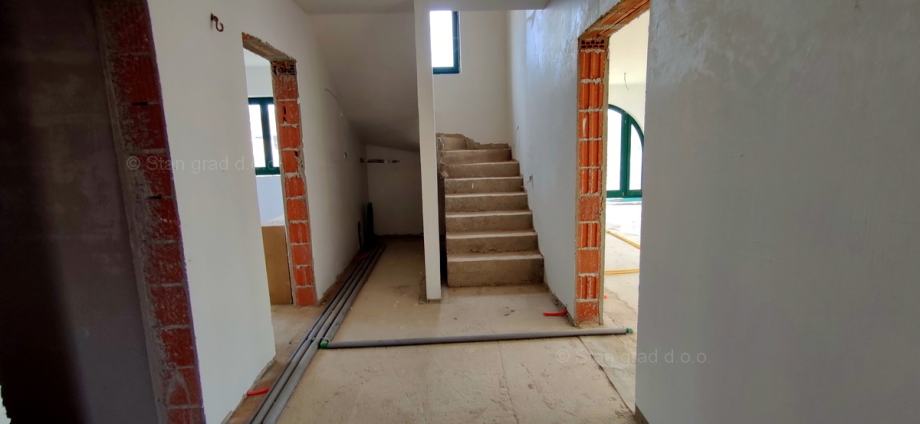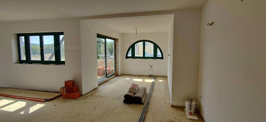 Na prodaji kod agencije Stan Grad Immobilien je vrlo dobra kuća u mediteranskoj regiji Otok Krk, tradicionalno atraktivnom području za turistički boravak na hrvatskom Jadranu. Navedena kuća je smještena u blizini mjesta Krk, na mirnoj poziciji malo podalje od gradske buke. Prema vrsti objekta, građevina se može kategorizirati kao samostojeća kuća katnica s bazenom. Kuća je predviđena za stanovanje jedne obitelji. Kuća zauzima prostor ukupne površine 135 m2. Ta površina sadržava dnevni boravak i kuhinja, 3 spavaće sobe, 2 kupaonice, 1 wc-a, 2 terase. Dodanu vrijednost ovom cijelom objektu daje okućnica oplemenjena bazenom i sunčalištem te sjenicom. Na spomenutoj okućnici nekretnine može se komforno parkirati više automobila na uređenom prostoru. Ova je nekretnina vlasništvo fizičke osobe pa je kupac prilikom prijepisa njenog vlasništva na svoje ime u obvezi plaćanja poreza na promet u visini 3%. Vlasnik garantira kompletnu i urednu tehničko-vlasničku dokumentaciju te jednostavan prijenos nekretnine na kupca. Javite nam se ili nas posjetite na otoku Krku, rado ćemo vas uslužiti i odgovoriti na vaša pitanja. Kupcu ove nekretnine će prodajni tim agencije Stan Grad Immobilien rado pomoći kod prijenosa vlasništva nekretnine u zemljišnu knjigu te prijenosa računa za struju, vodu i odvoz smeća na svoje ime. Nekretnina se prodaje po sistemu "ključ u ruke", a planirani završetak radova je kraj 2022g.