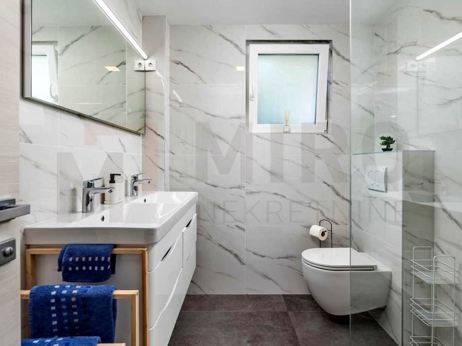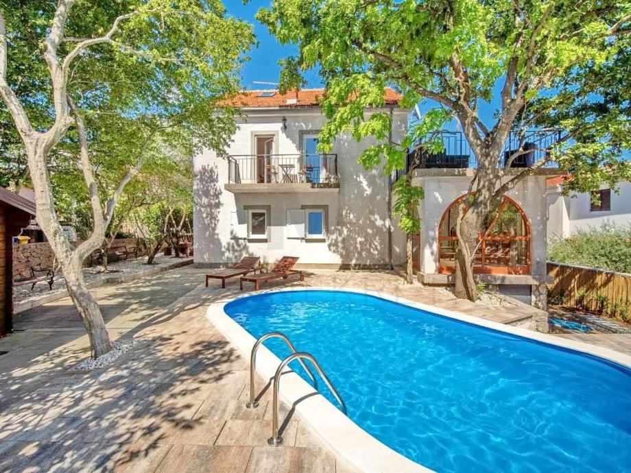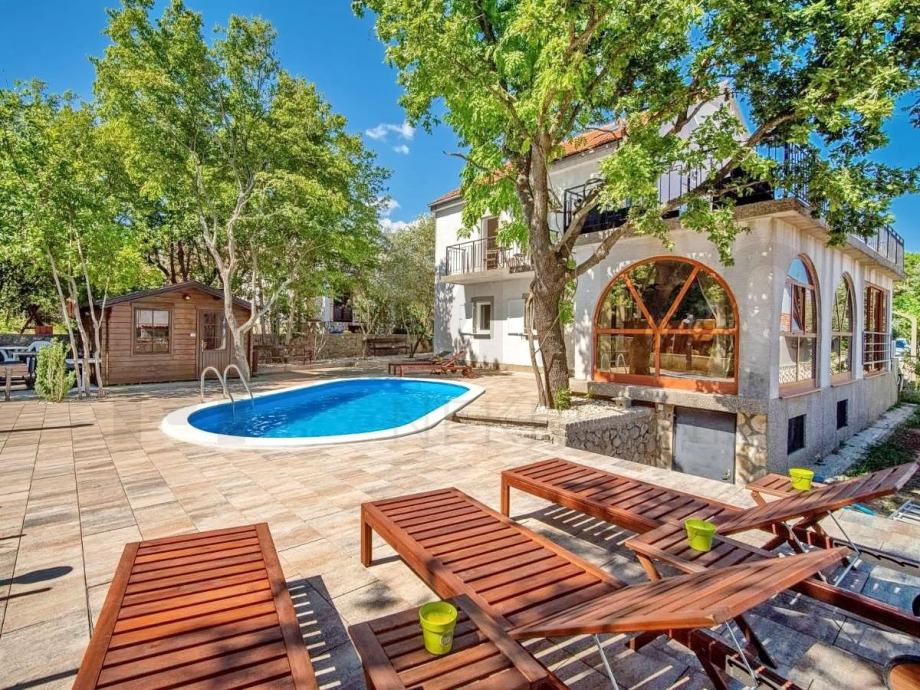 Otok Krk, Krk šira okolica, prodaje se samostojeća kuća s bazenom i lijepim pogledom na more, smještena u mirnoj lokaciji. Ova prostrana kuća, sagrađena je na parceli od 550 m2,ukupne stambene površine 170 m2. U prizemlju se nalaze dvije spavaće sobe s izlazom na terasu, kupaonica i dnevni boravak povezan s kuhinjom i blagovaonicom. Unutarnje stepenice vode na kat gdje se nalaze četiri spavaće sobe, od kojih dvije izlaze na terasu s pogledom na more, a dvije na balkon. U visokom potkrovlju smještene su dodatne dvije spavaće sobe i još jedna kupaonica. Lijepo uređena okućnica sa bazenom, sunčalištem, natkrivenom terasom te vrtna kućica. Garaža u suterenu pruža dodatnu praktičnost. Potpuno je klimatizirana, opremljena kvalitetnom stolarijom i namještena. Na okućnici se nalazi više parkirnih mjesta, roštilj. Nekretnina je vlasništvo fizičke osobe i kupac je u obvezi plaćanja poreza na promet nekretnina u visini 3%. Vlasnik jamči brz prijenos vlasništva na novog kupca. Posjetite nas i pronađite kvadrat vašeg doma!