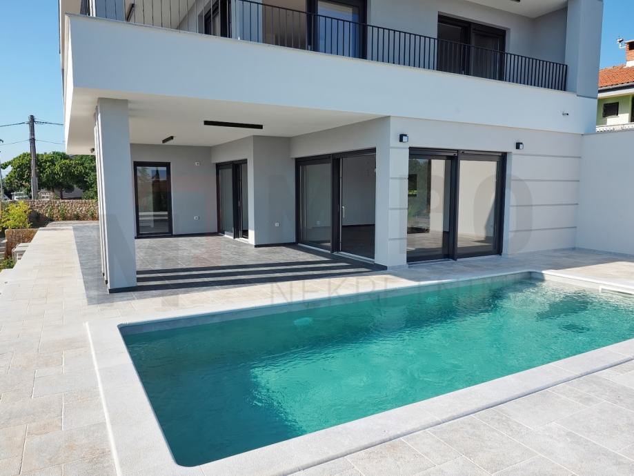 Otok Krk, grad Krk, okolica, nova, moderna samostojeća kuća s bazenom. Kuća je katnosti prizemlje i kat, sveukupne netto površine 200 m2.