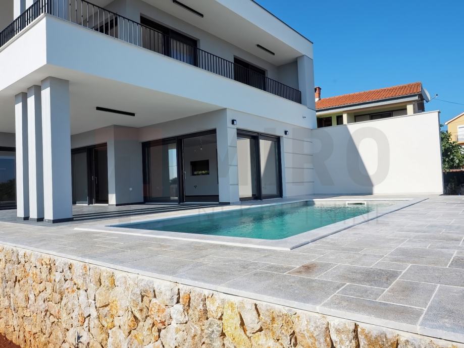 Krk, okolica, samostojeća moderna vila s bazenom i otvorenim pogledom (prodaja)