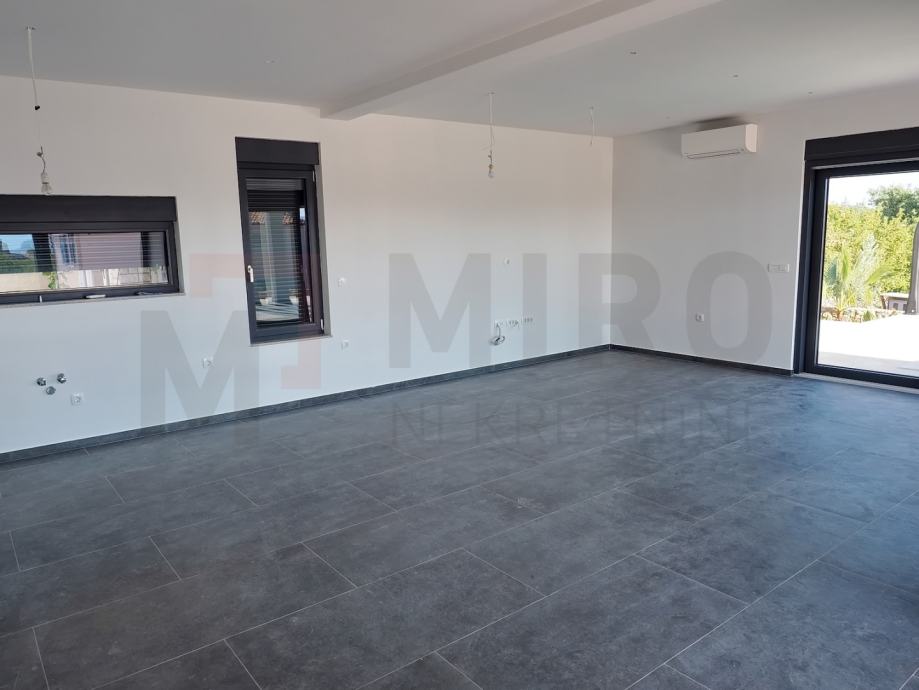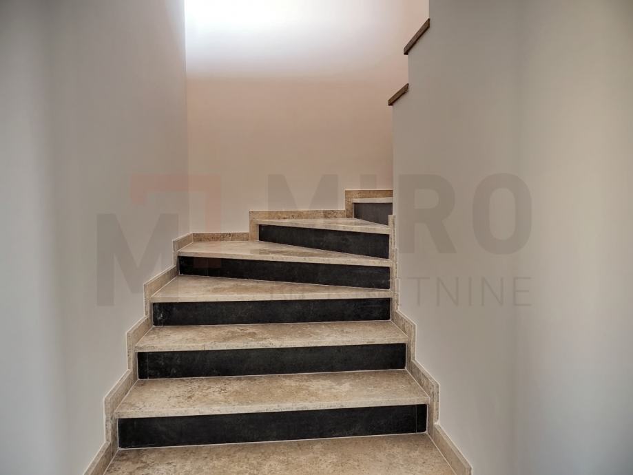 U prizemlju kuće se nalazi ulazni prostor, spremište, wc, kuhinja, prostrani dnevni boravak i blagovaona s izlazom na natkrivenu terasu i prostranu okućnicu.