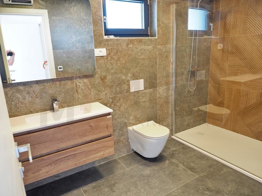 Unutarnjim stepeništem dolazi se na kat kuće, koji se sastoji od 4 spavaće sobe, svaka sa svojom kupaonom. Dvije sobe imaju izlaz na vlastite terase, koje pružaju pogled na more. Na okućnici površine 530m2, nalazi se bazen, sunčalište, solarni tuš, 2 parkirna mjesta. Nekretninu krasu moderan projekt, kvalitetna gradnja, keramika i sanitarije renomiranih proizvođača, dobar raspored prostorija, PVC stolarija, podno grijanje u dnevnom boravku i kupaonama, video nadzor. Vlasnik nekretnine je fizička osoba te se prilikom prijenosa njenog vlasništva kupcu obračunava porez na promet nekretnine u iznosu 3%. Vlasnik kuće jamči urednu vlasničku i tehničku dokumentaciju. Posjetite nas i pronađite kvadrat vašeg doma!