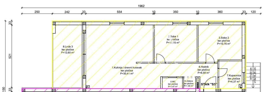 Stan je pažljivo raspoređen kako bi pružio maksimalnu udobnost i fluidnost prostora.