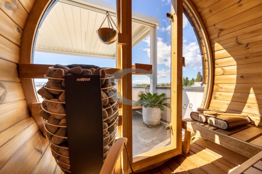 jacuzzi s pogledom na more, saunu, lounge zonu za opuštanje i druženje.