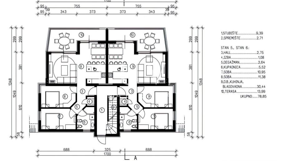 Stan ima ukupnu površinu 78,75 m2, sastoji se od: