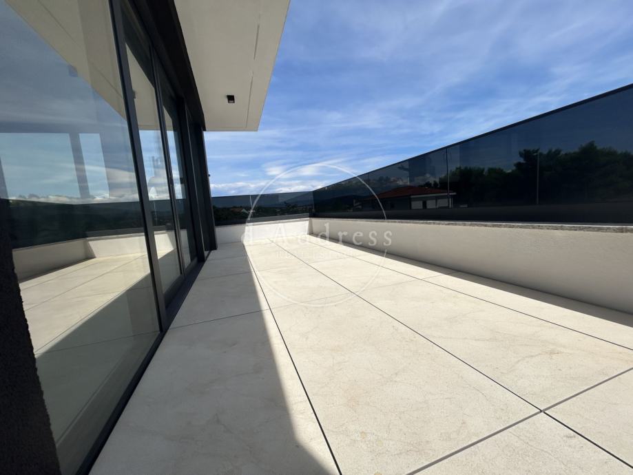 Stan se sastoji od hodnika, ostave, kuhinje s blagovaonicom i dnevnim boravkom, 3 spavaće sobe, dvije kupaonice, garderobe i krovne terase, a pripadaju mu i 2 parkirna mjesta. Površina stana bez krovne terase iznosi 134, 91 m2.