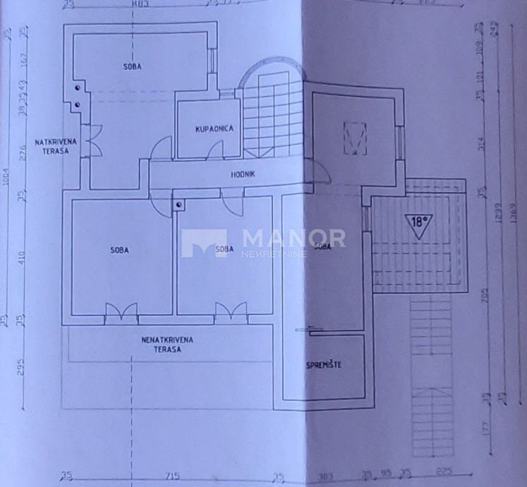 Na prvom katu kuće nalazi se dvoetažni stan veličine cca 190m2 koji se sastoji od šest (6) spavaćih soba, dvije (2) kupaone, dnevnog boravka te kuhinje i blagavaone.