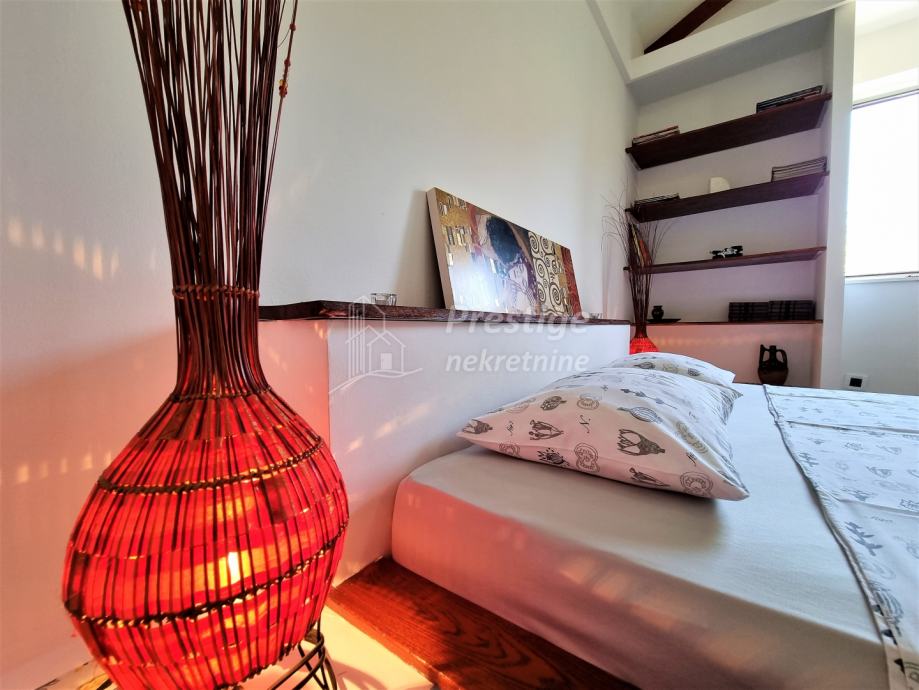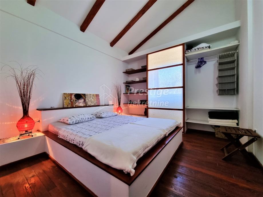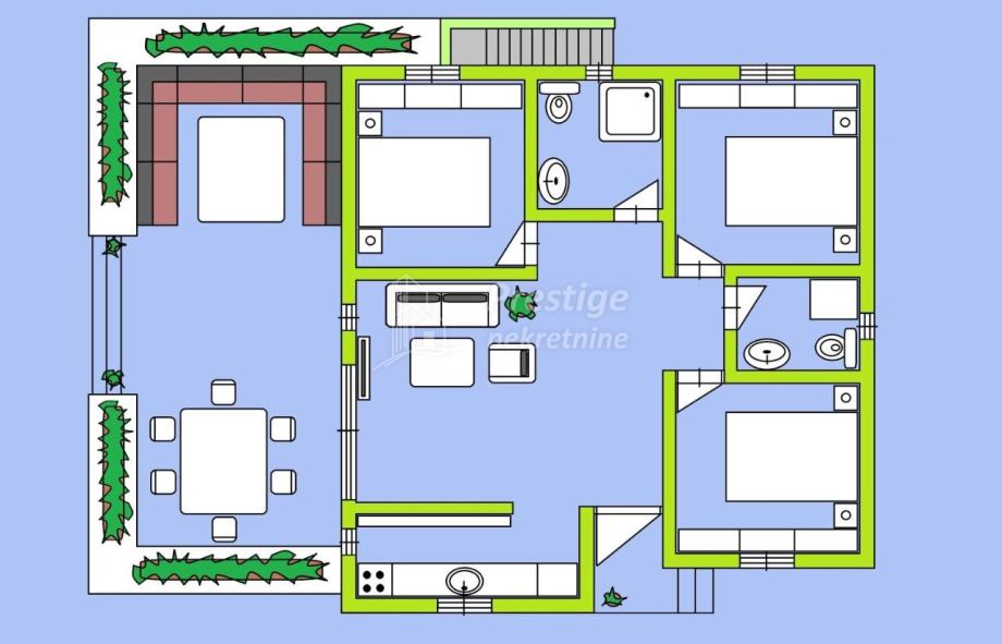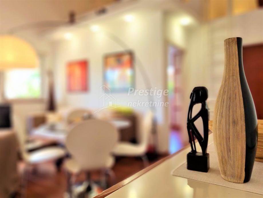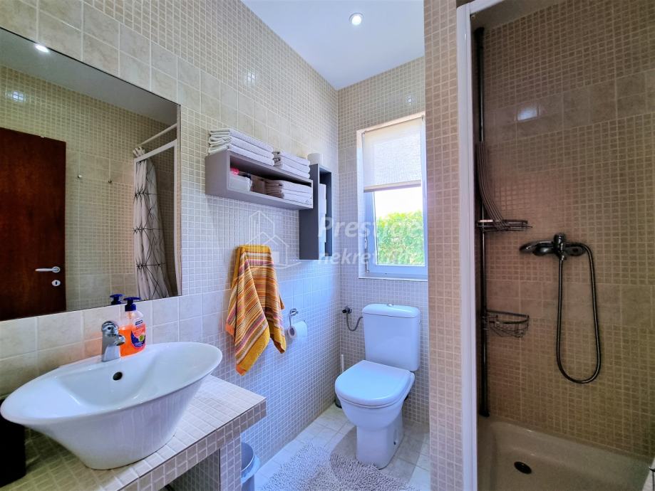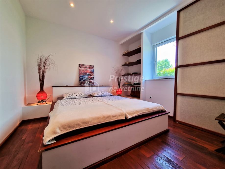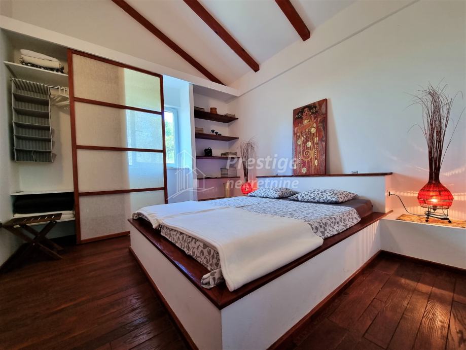 Na prodaju je prekrasno uređena kuća u mjestu Pinezići na otoku Krku, na lijepoj, mirnoj lokaciji udaljenoj svega osamsto metara od mora. Kuća se prostire na 100 m2 u prizemlju s dodatnih 25 m2 u podrumu te čak 27m2 natkrivene terase. Sastoji se od velikog dnevnog boravka s visokim stropom, a u sklopu kojega je i kuhinja i blagovaonica te galerija. Sve tri spavaće sobe imaju ugrađene ormare čija klizna vrata služe i kao sjenila za prozore. Kupaonica je prostrana, kompletno opremljena, a tu je i dodatni toalet. Iznad jedne od spavaćih soba je lijepa, prostrana galerija na kojoj su dodatna mjesta za spavanje, a po potrebi se može urediti i drugačije. Iz boravka se izlazi na natkrivenu terasu koja se prostire čitavom duljinom kuće, a na terasi su po narudžbi rađeni masivni drveni stol i stolice te fantastično osmišljeni lounge dio s mekanim jastucima i masivnim stolićem. S terase se izlazi na lijepo dvorište u kojem je i veliki roštilj, ali i više nego dovoljno mjesta za ugraditi prostrani bazen. Čitava okućnica je u zelenilu koje diskretno odjeljuje kuću od pogleda susjeda, a ispred kuće su i zelenilom natkrivena dva parkirna mjesta, a po potrebi moguće je parkirati i dodatna vozila u dvorištu. Do mora je cca 800m, svega tri minute vožnje autom ili par minuta više laganog hoda. Na izbor je više plaža i uvala za kupanje s puno hladovine, ali i sadržaja tipa restorana i barova. Sam otok Krk je jedna od najtraženijih lokacija na Jadranu, sva mjesta na otoku su izvrsno prometno povezana, kao i sam otok s kopnom. Kuća je građena 2004.g. vrhunskim materijalima, a prodaje se kompletno namještena i opremljena. Nisu potrebna baš nikakva dodatna ulaganja, kuća je izrazito dobro održavana, vlasništvo je uredno.