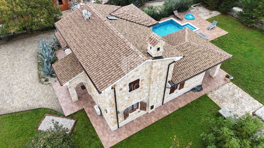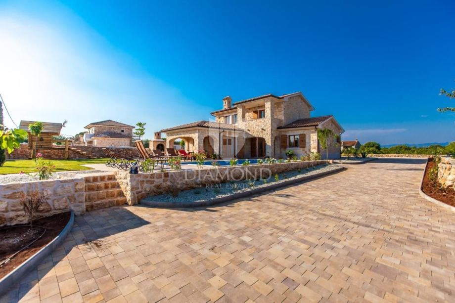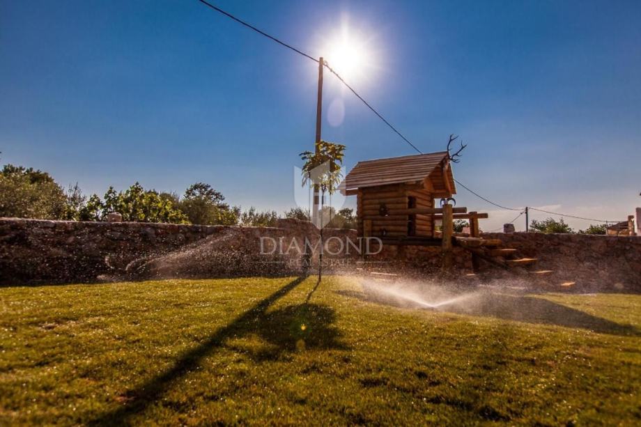 Smještena u mirnoj okolici grada Krka, ova šarmantna kamena vila izgrađena je 2015. godine, površine 200 m², s pažnjom na detalje kako bi se savršeno uklopila u autentični otočki stil gradnje. Vila se prostire na prostranoj parceli od 1000 m², potpuno ograđenoj kamenim zidom i automatskom kapijom, pružajući potpuni mir i privatnost.