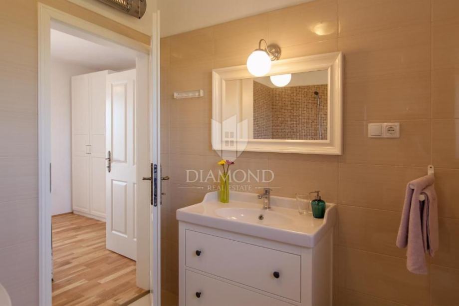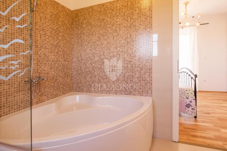 Unutrašnjost vile odiše prostranošću i svjetlošću. U prizemlju se nalazi moderna kuhinja povezana s prostranim dnevnim boravkom, idealnim za druženja s obitelji i prijateljima, te spavaća soba s kupaonicom. Na katu su smještene dvije udobne spavaće sobe, svaka s vlastitom kupaonicom, što osigurava privatnost i komfor svim članovima obitelji ili gostima.