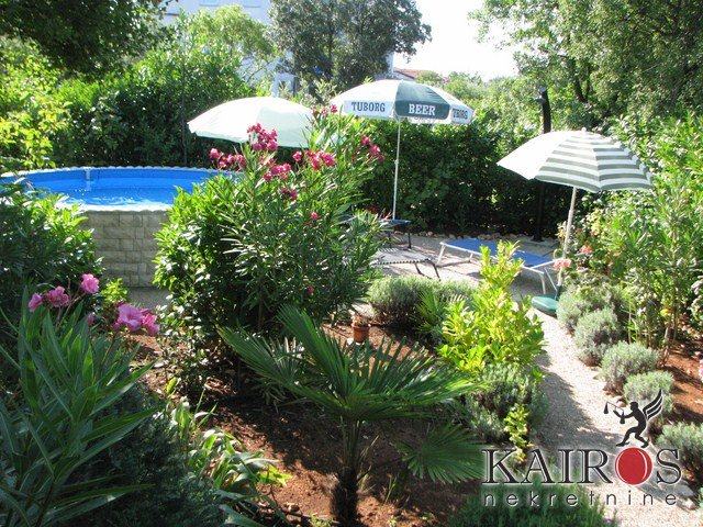 KRK, lijepa, obiteljska kuća, samostojeća prizemnica, 100m2, dva dvosobna stana sa dnevnim boravkom, okućnica 600 m2 sa dva kamina i sjenicom, parking za pet automobila, 800m od mora, mogućnost nadogradnje. Energet. certifikat "B". Kuća ima uporabnu dozvolu.
