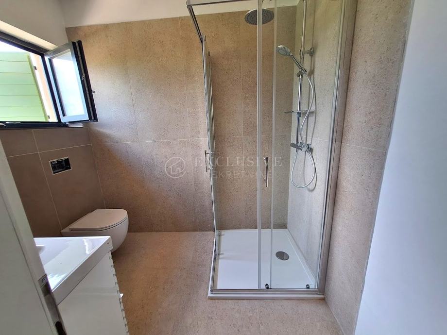 U prizemlju nalazimo: ulazni hol, kupaonicu, stubište, dnevni boravak, kuhinju, sobu za rekreaciju i dvije natkrivene terase od 18,54 m2 i 12,38 m2. Unutrašnjim stepeništem se uspinjemo na kat gdje se nalazi hodnik, 4 spavaće sobe, 4 kupaonice i natkrivena terasa od 7,58 m2. Na prostranoj uređenoj okućnici nalazi se bazen od 32 m2 sa sunčalištem i 4 parkirnih mjesta. Kuća se prodaje namještena. Za izgradnju vile korišteni su visokokvalitetni materijali, a biti će opremljena na slijedeći način: kvalitetni keramički podni oblozi, drveni seljački pod, PVC stolarija s atraktivnim drvenim škurama, podno grijanje, klimatizacijski uređaji te kamin na drva. Idealna za ljubitelje luksuzne mediteranske gradnje i mirnih oaza za odmor!