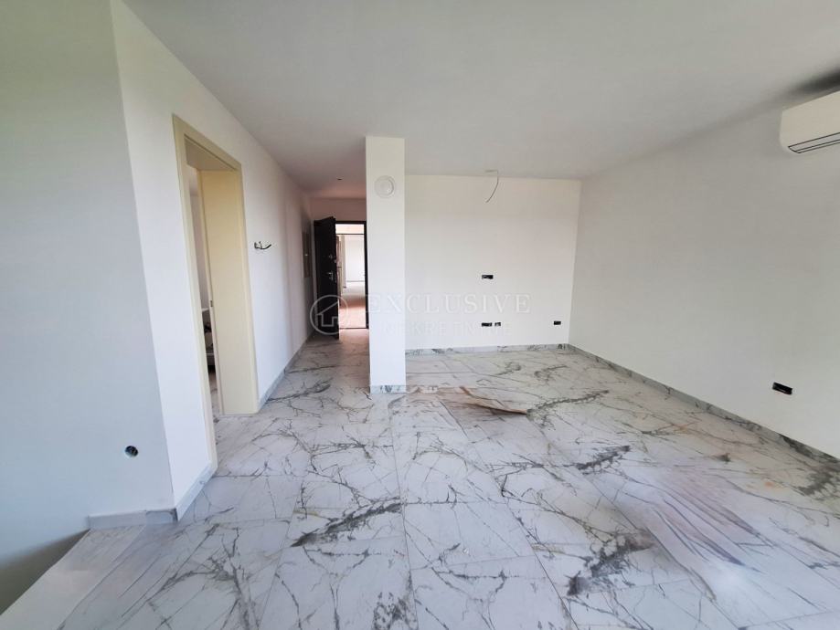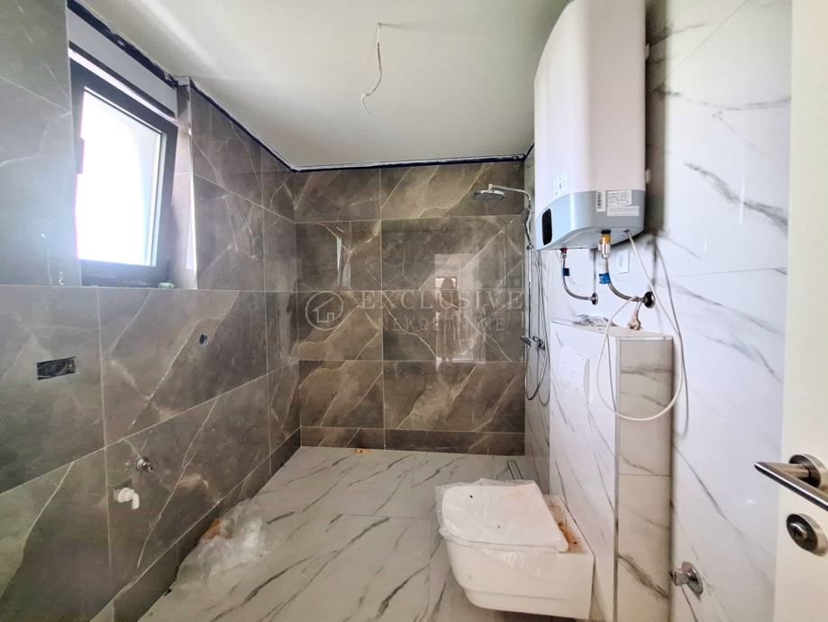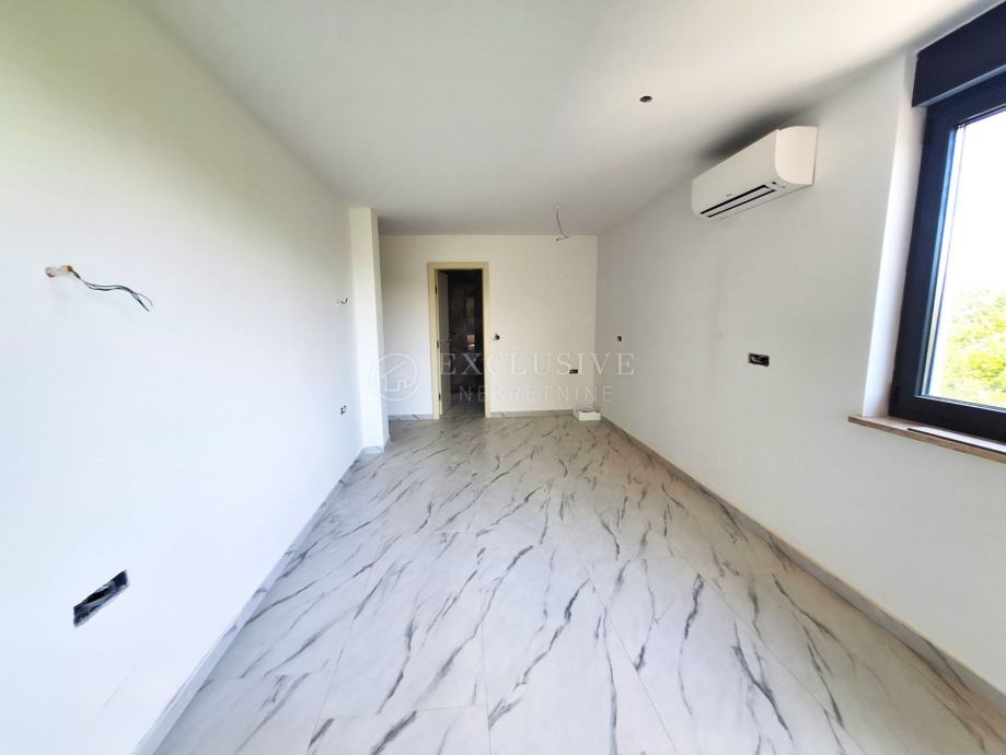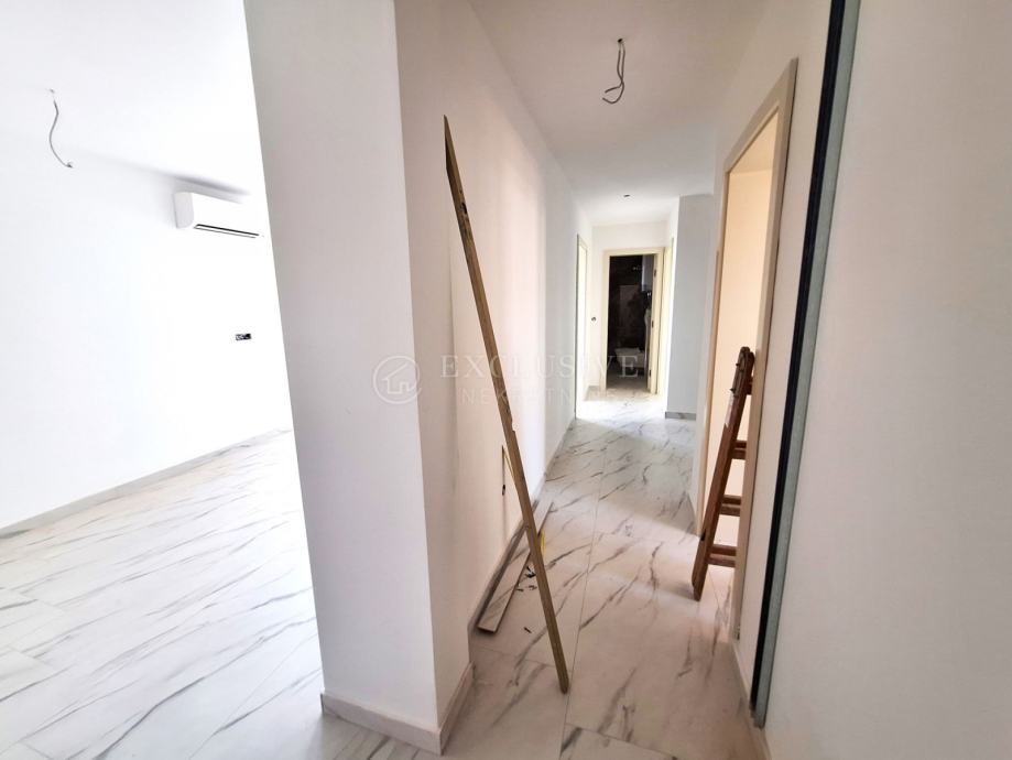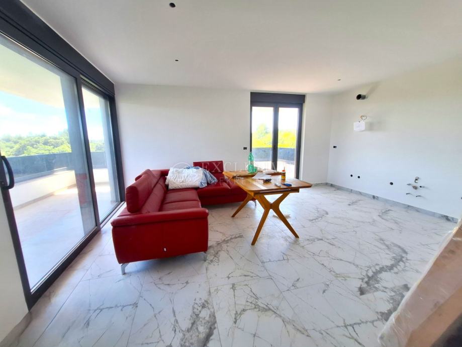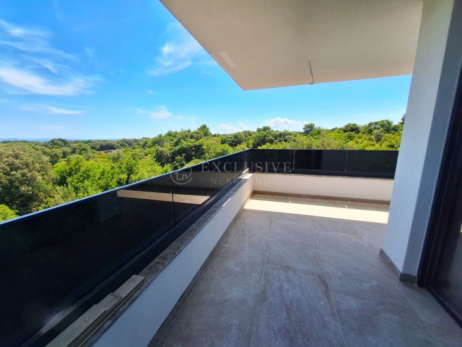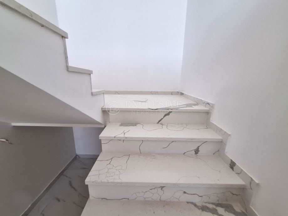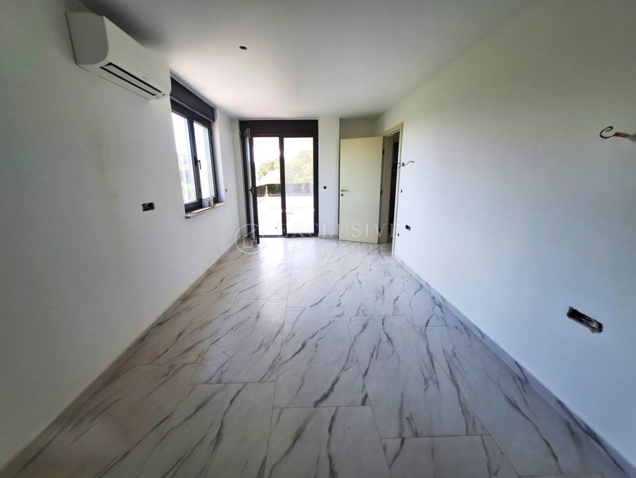 U gradu Krku smjestio se prekrasan luksuzni dvoetažni apartman s otvorenim pogledom na more. Apartman stambene površine 168 m2 nalazi se u novoizgrađenom objektu s ukupno 4 stambene jedinice. Apartman je razveden na dvije etaže, a na prvoj etaži nalaze se tri spavaće sobe od kojih je jedna master soba s vlastitom kupaonicom i garderobom te još jedna kupaonica. Unutarnjim stepeništem se uspinjemo na drugu etažu na kojoj se nalazi kuhinja, blagovaonica, dnevni boravak te spavaća soba s kupaonicom. Sa prostranih terasa koje se pružaju na obje etaže očaravati će prekrasan otvoreni pogled na more. Apartman je opremljen visokokvalitetnim materijalima, troslojnom aluminijskom vanjskom stolarijom s električnim podizačima roleta i komarnicima te podnim grijanjem. Apartmanu pripadaju dva parking mjesta i spremište.